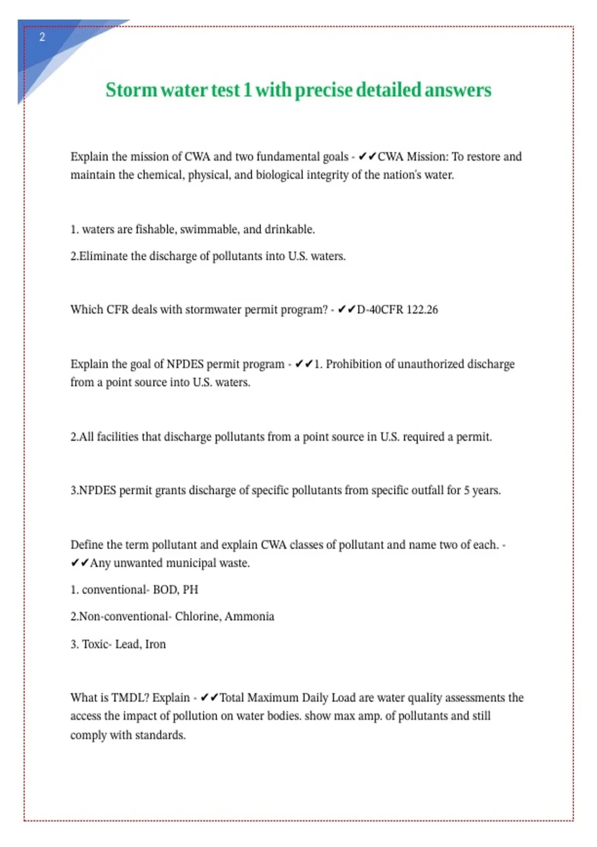 Storm water test 1 with precise detailed answers || || || || || || ||
