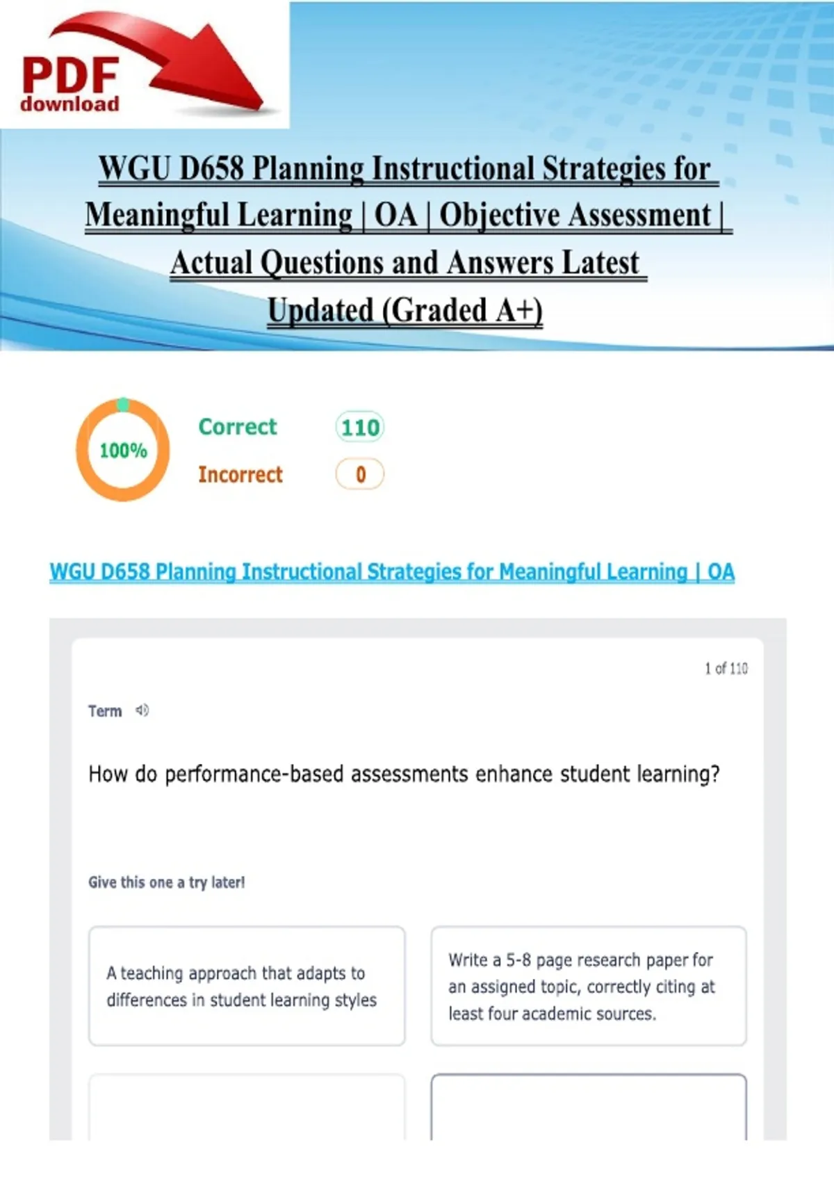 WGU D658 Planning Instructional Strategies for Meaningful Learning | OA