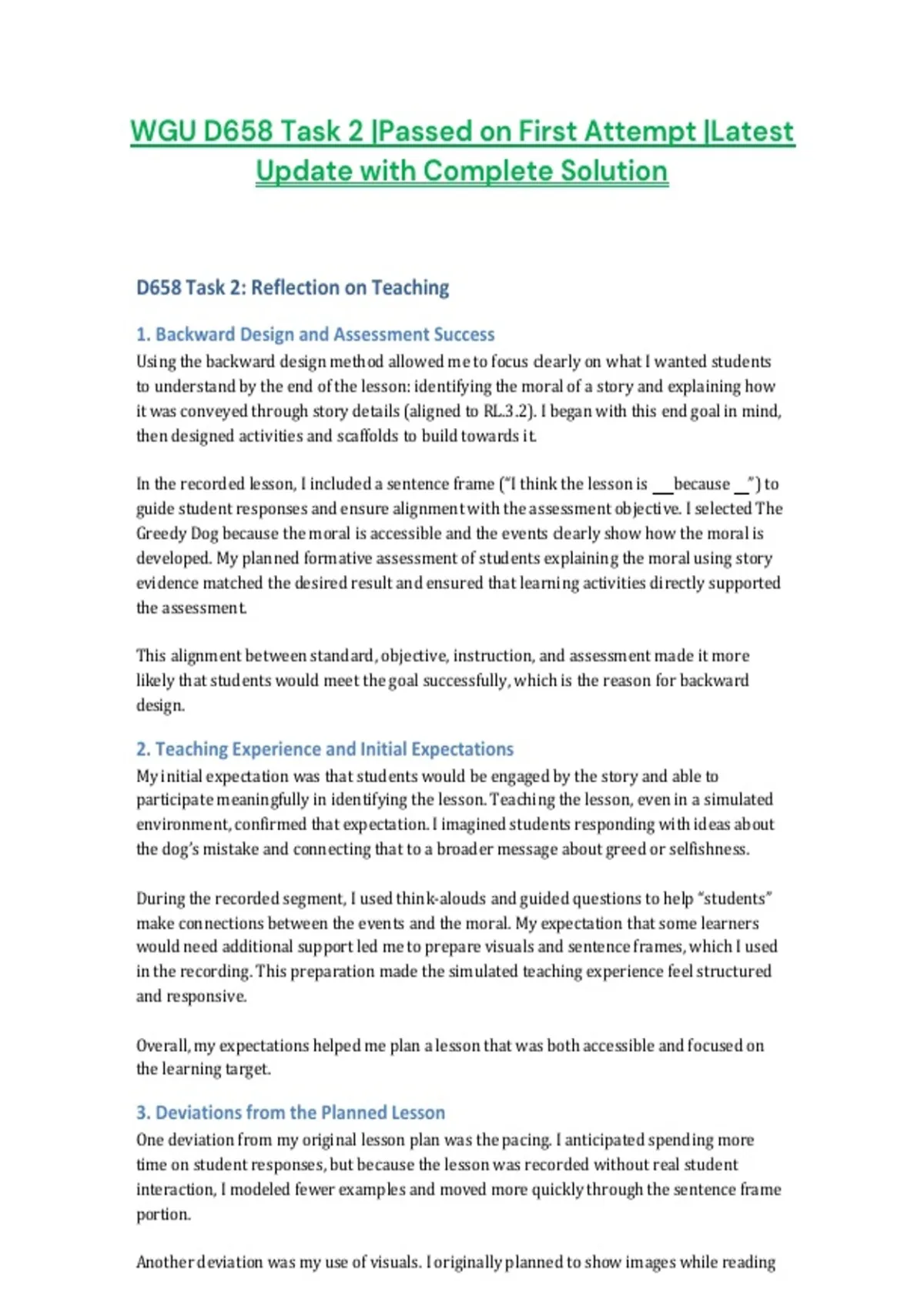 D658 Task 2: Reflection on Teaching
