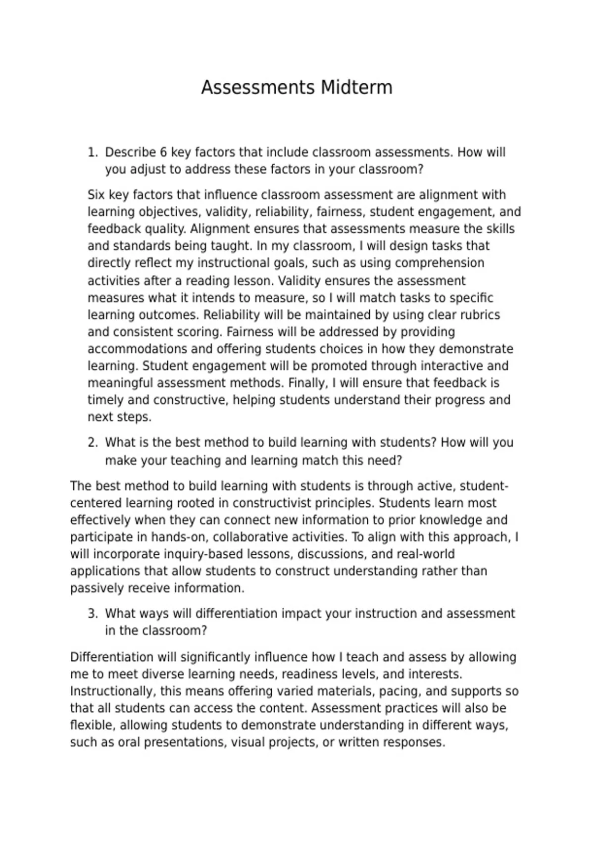3. What ways will differentiation impact your instruction and assessment