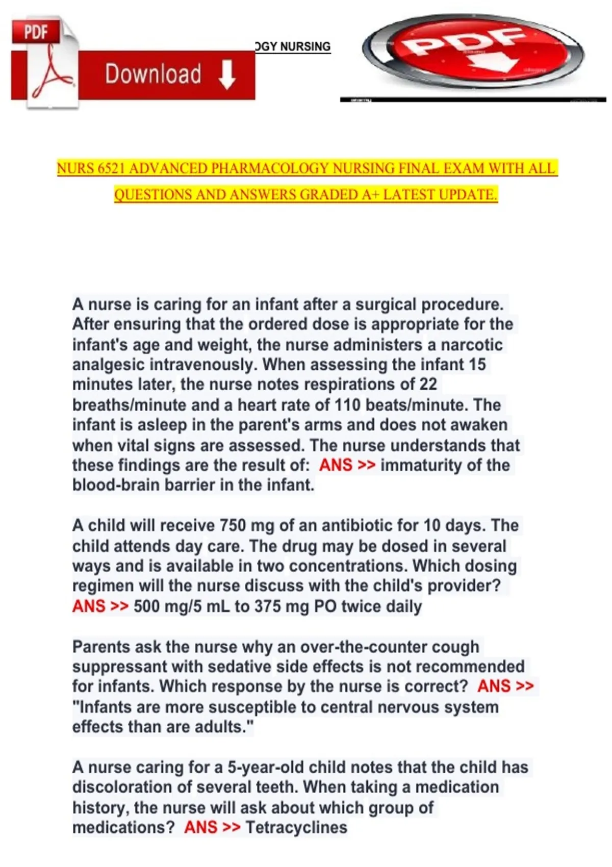 for infants. Which response by the nurse is correct? ANS >>