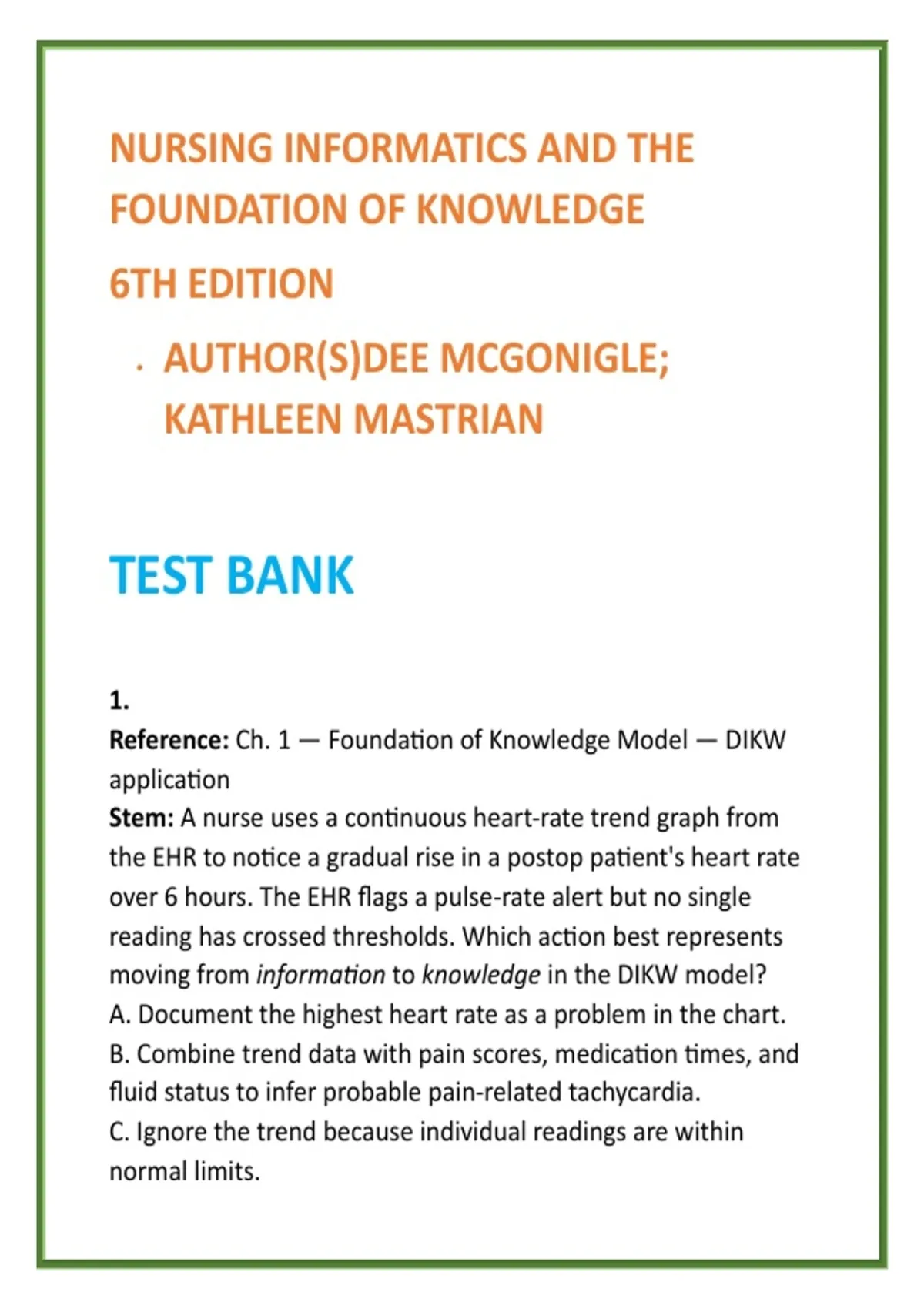 Nursing Informatics 6th Edition Study Guide & DIKW Practice Questions