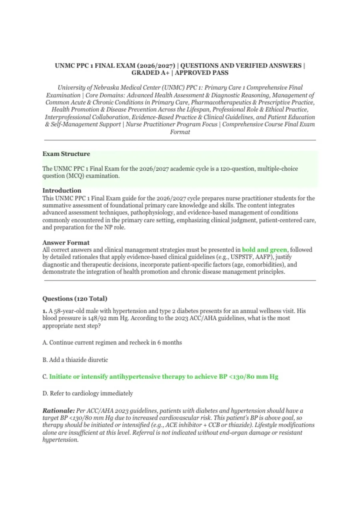 This UNMC PPC 1 Final Exam guide for the 2026/2027 cycle prepares nurse practitioner students for the