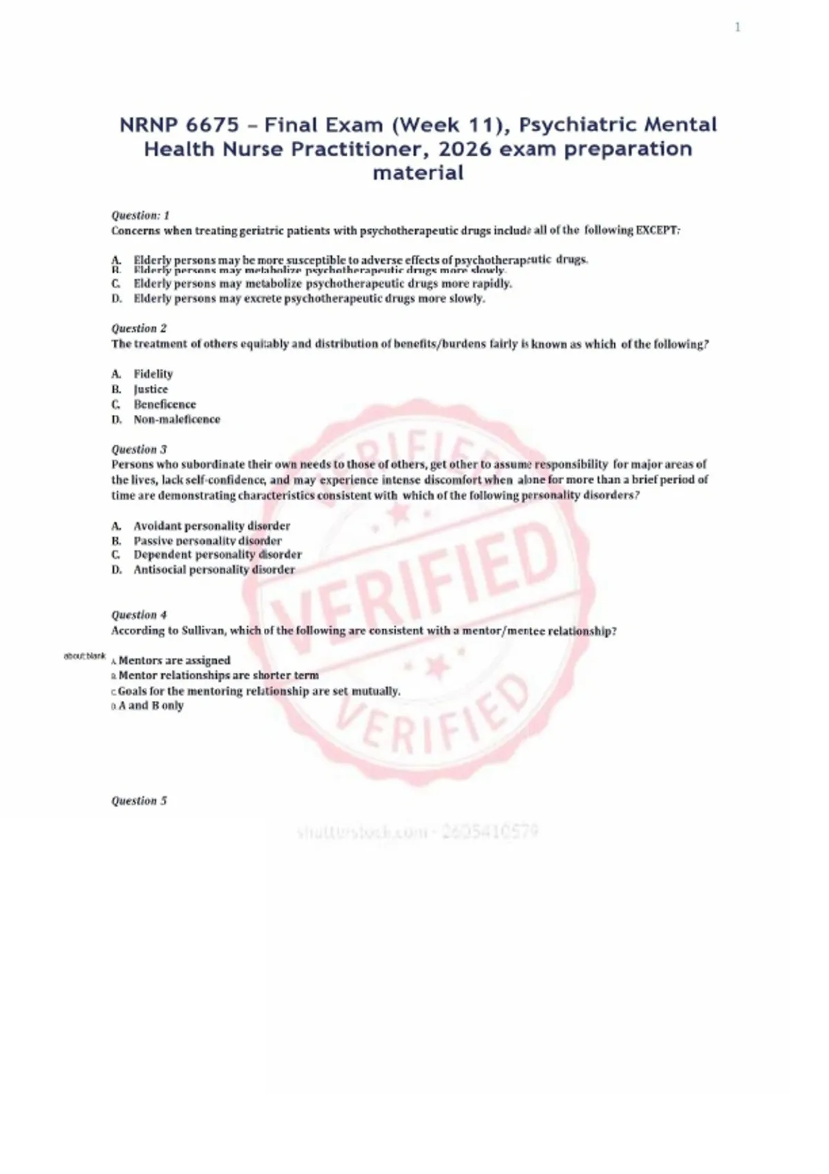 NRNP 6675 – Final Exam (Week 11), Psychiatric Mental Health Nurse Practitioner, 2026 exam preparation material.