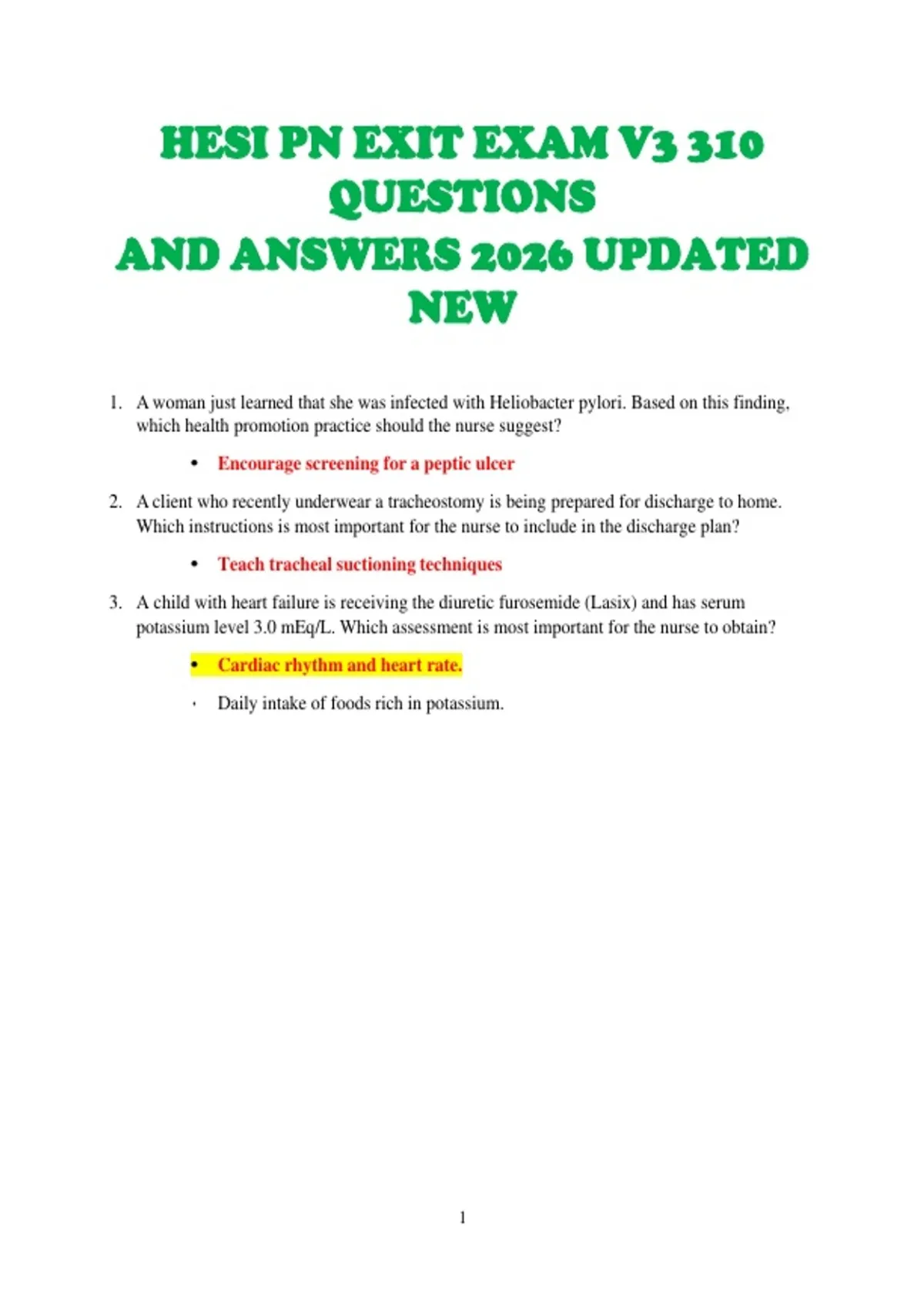 1. A woman just learned that she was infected with Heliobacter pylori. Based on this finding,