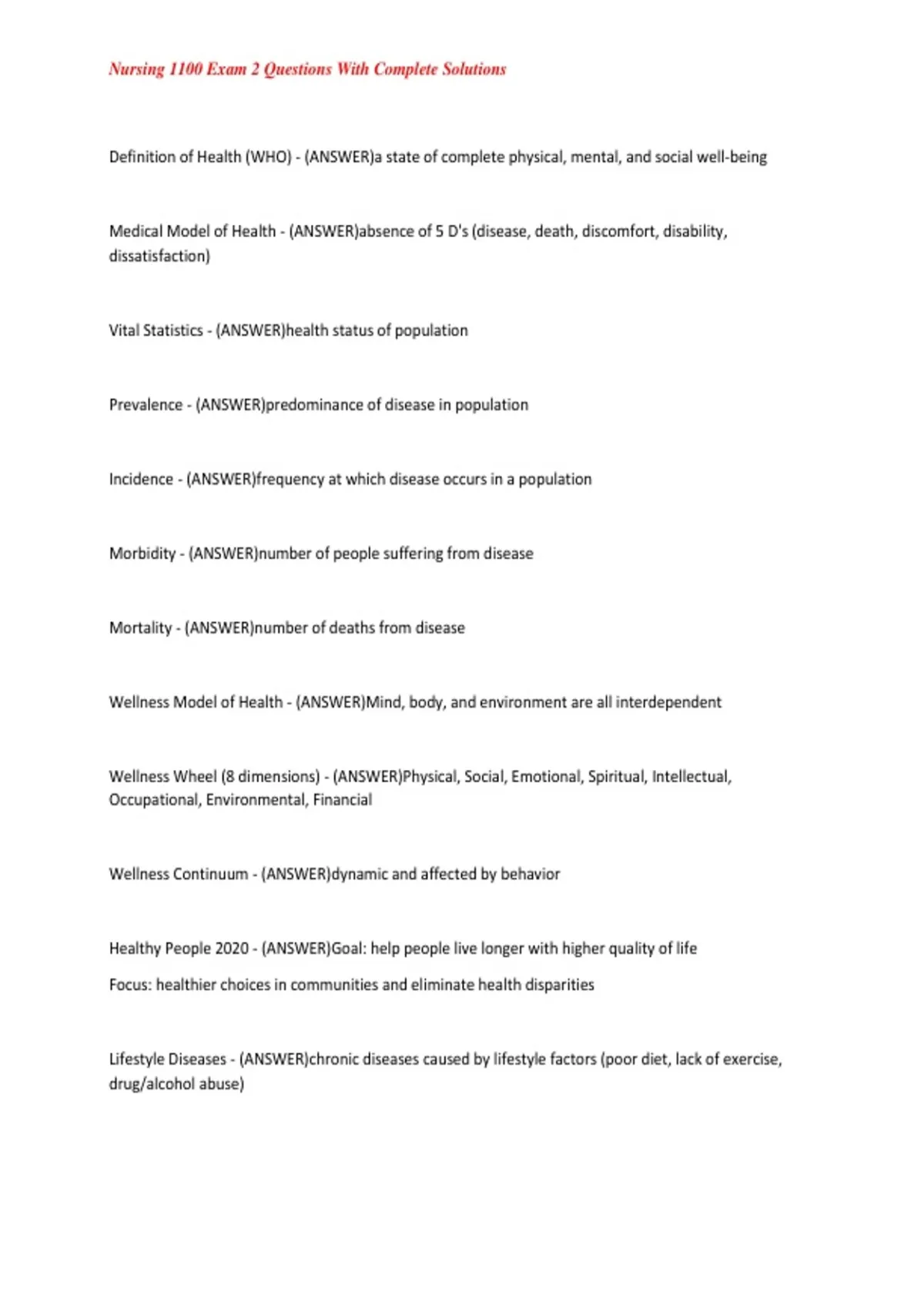 , Nursing 1100 Exam 2 Questions With Complete Solutions
