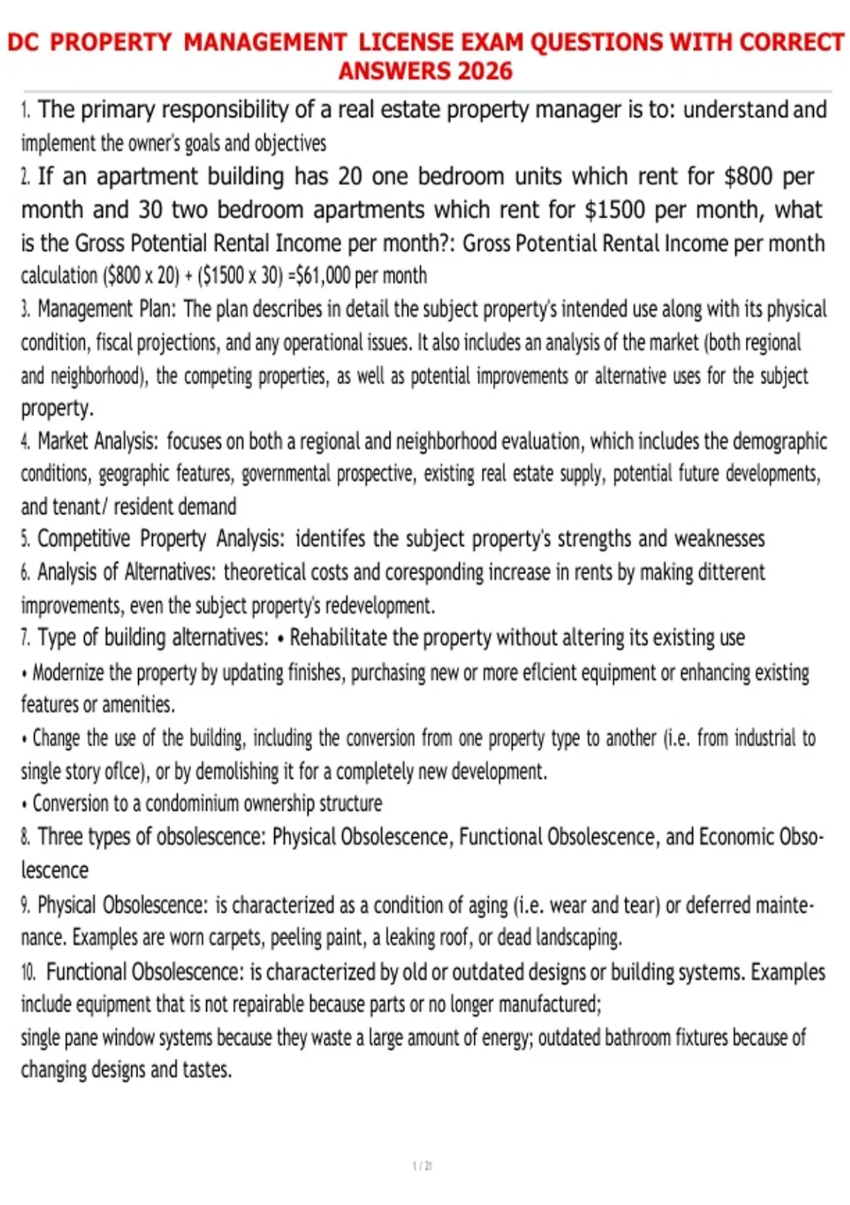 , DC PROPERTY MANAGEMENT LICENSE EXAM QUESTIONS WITH CORRECT