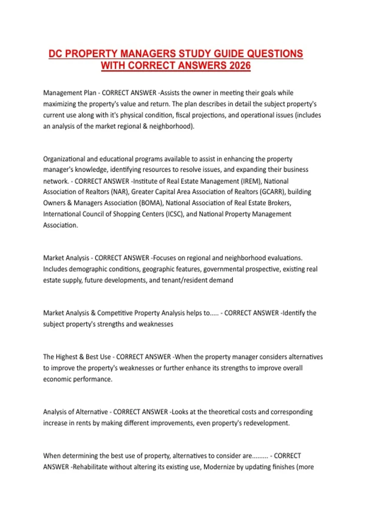 DC PROPERTY MANAGERS STUDY GUIDE QUESTIONS WITH CORRECT ANSWERS 2026