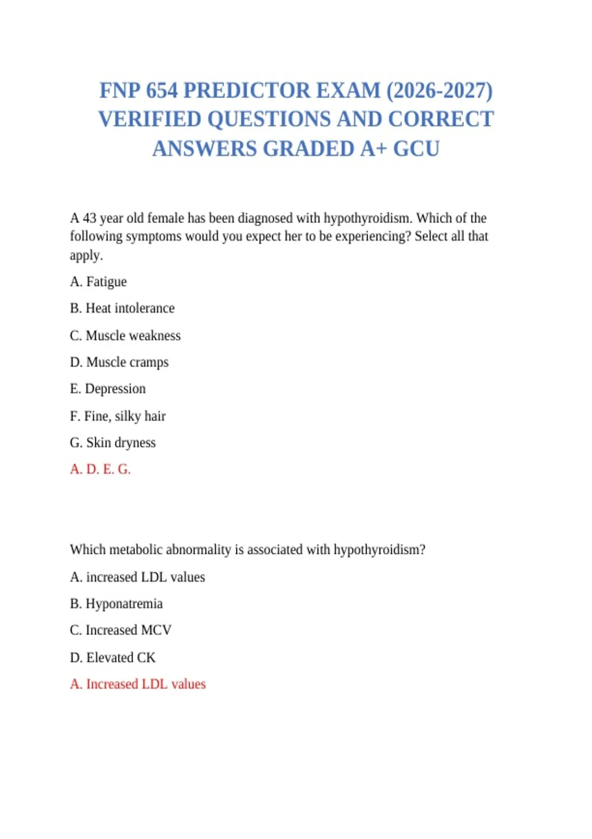 FNP 654 PREDICTOR EXAM () VERIFIED QUESTIONS AND CORRECT ANSWERS GRADED A+ GCU
