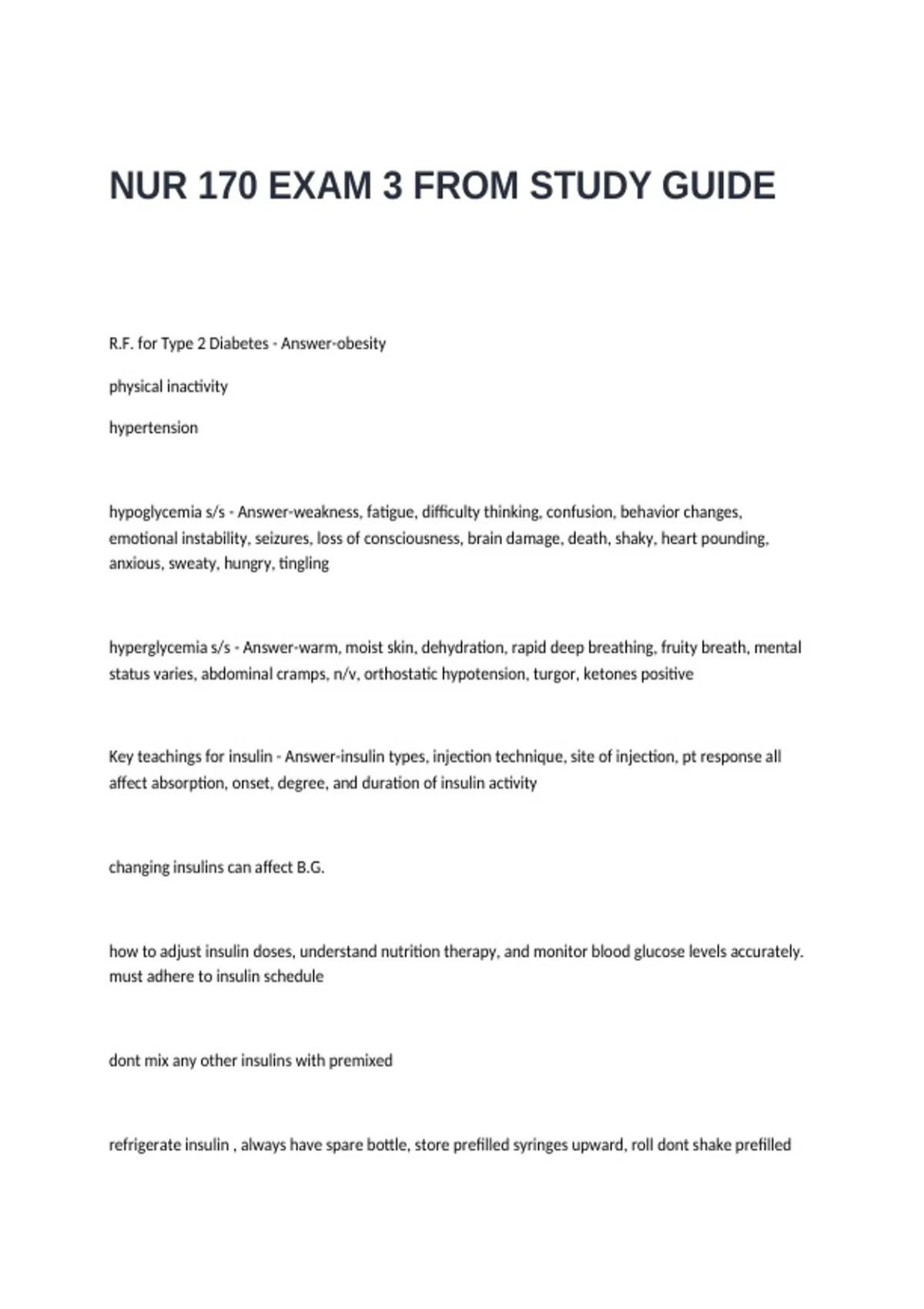 NUR 170 EXAM 3 FROM STUDY GUIDE