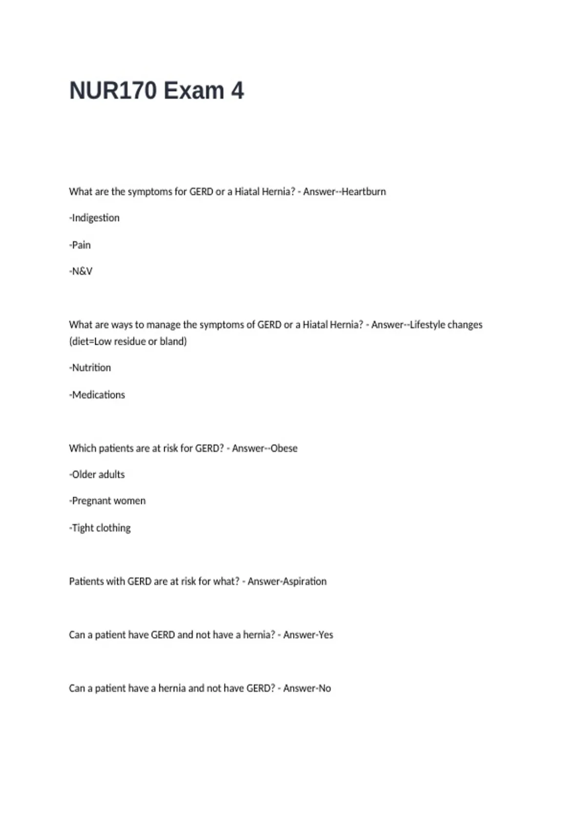 What are the symptoms for GERD or a Hiatal Hernia? - Answer--Heartburn