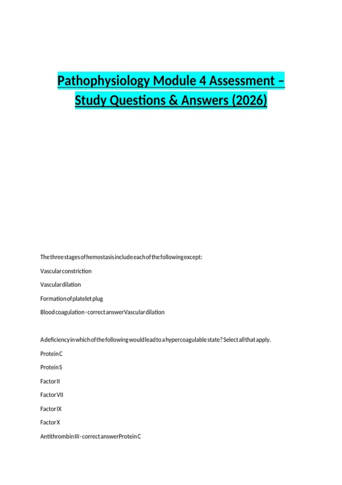 Pathophysiology Module 4 Assessment – Study Questions & Answers (2026)