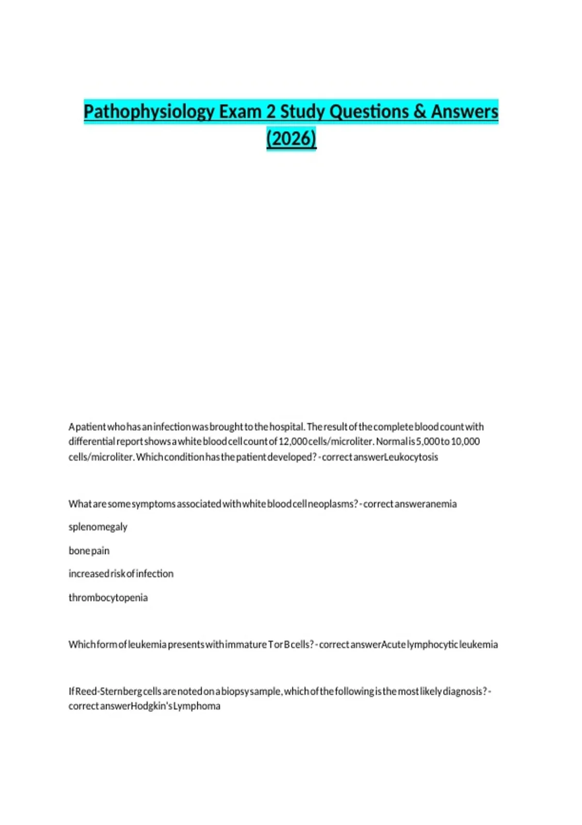 Pathophysiology Exam 2 Study Questions & Answers
