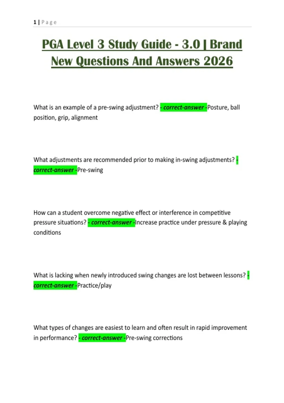 PGA Level 3 Study Guide - 3.0 | Brand New Questions And Answers 2026