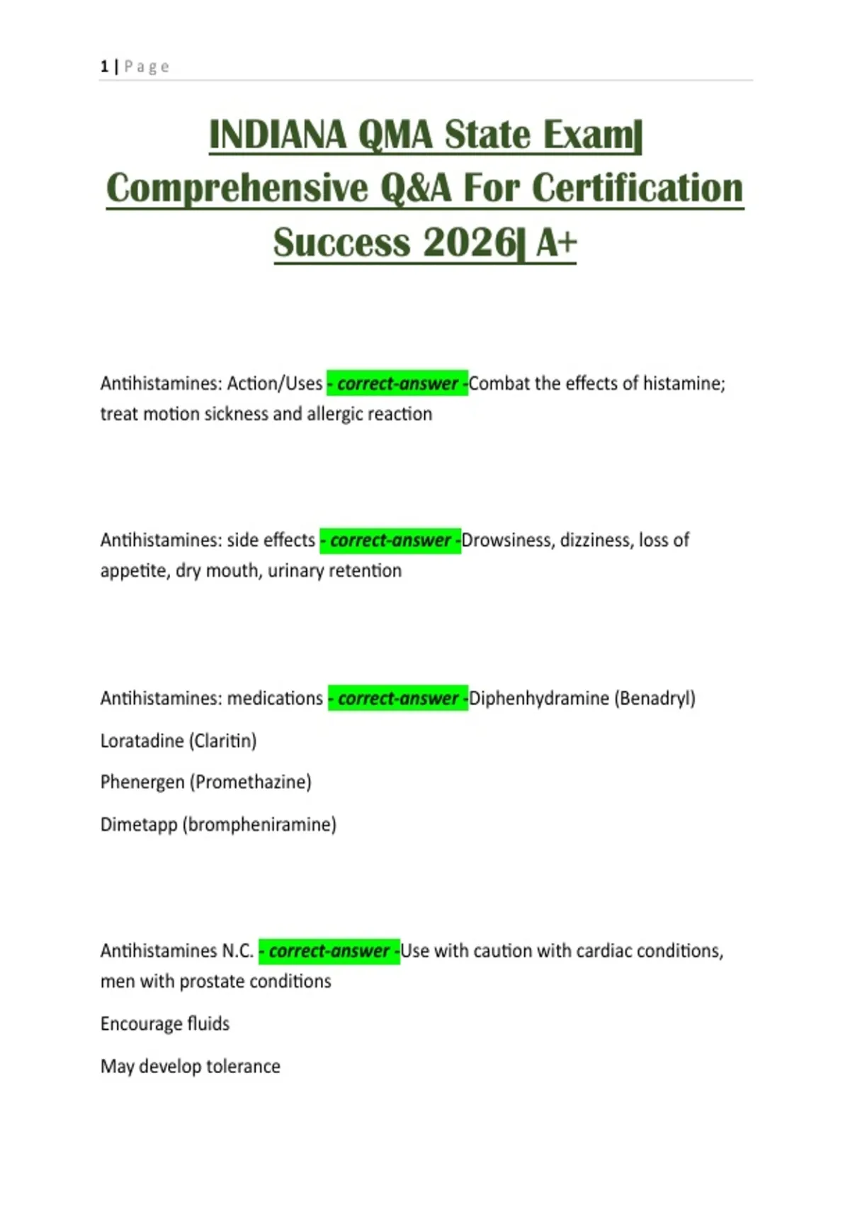 Antihistamines: Action/Uses - correct-answer -Combat the effects of histamine;