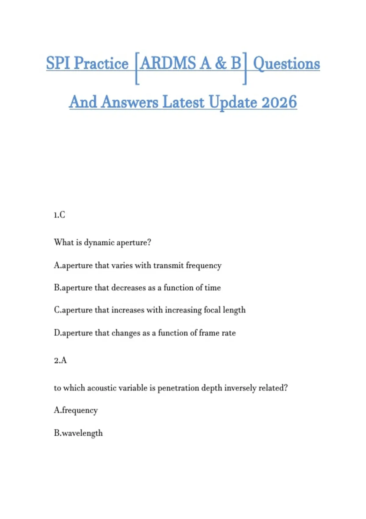 ARDMS SPI EXAM 2025/2026 (REAL EXAM) 50 QUESTIONS AND CORRECT ANSWERS