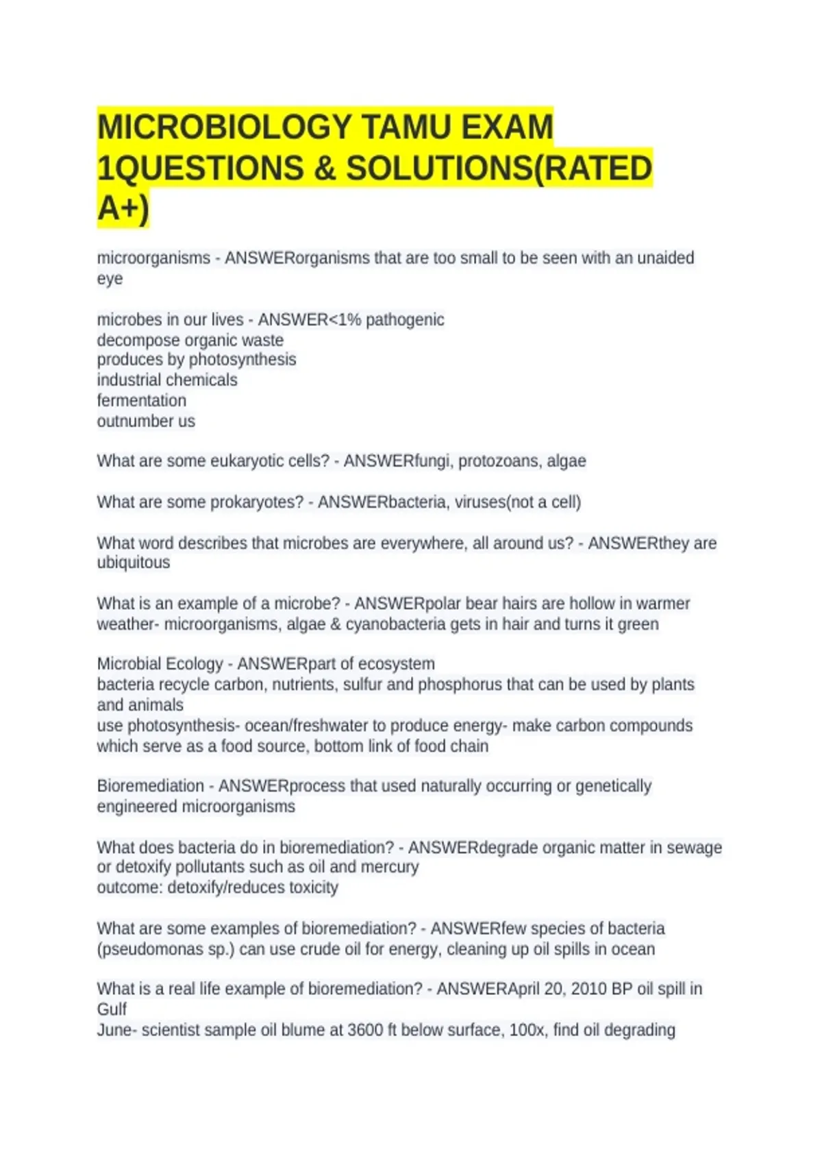 MICROBIOLOGY TAMU EXAM 1QUESTIONS & SOLUTIONS(RATED A+)
