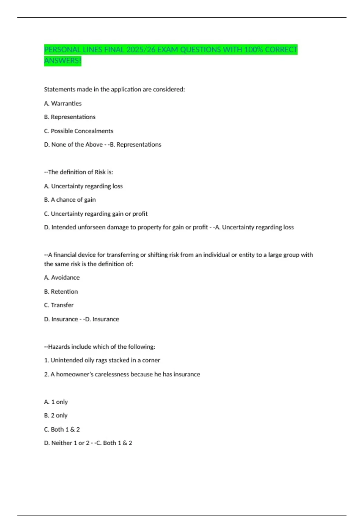PERSONAL LINES FINAL 2025/26 EXAM QUESTIONS WITH 100% CORRECT