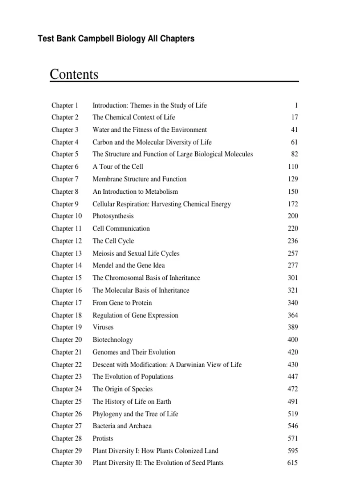 Test Bank Campbell Biology All Chapters