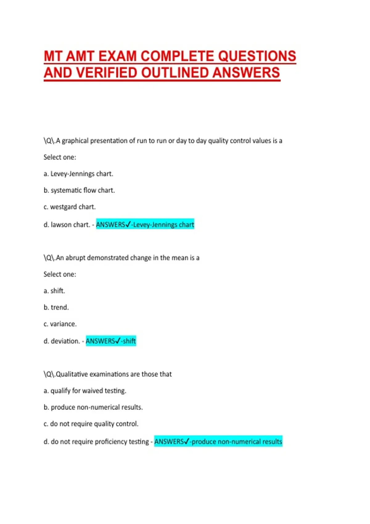 d. lawson chart. - ANSWERS✔-Levey-Jennings chart