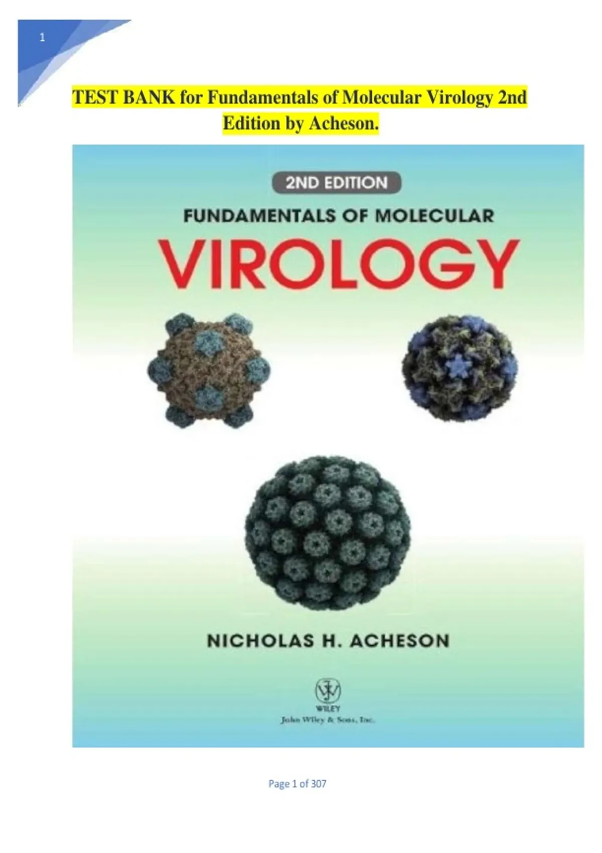 TEST BANK for Fundamentals of Molecular Virology 2nd