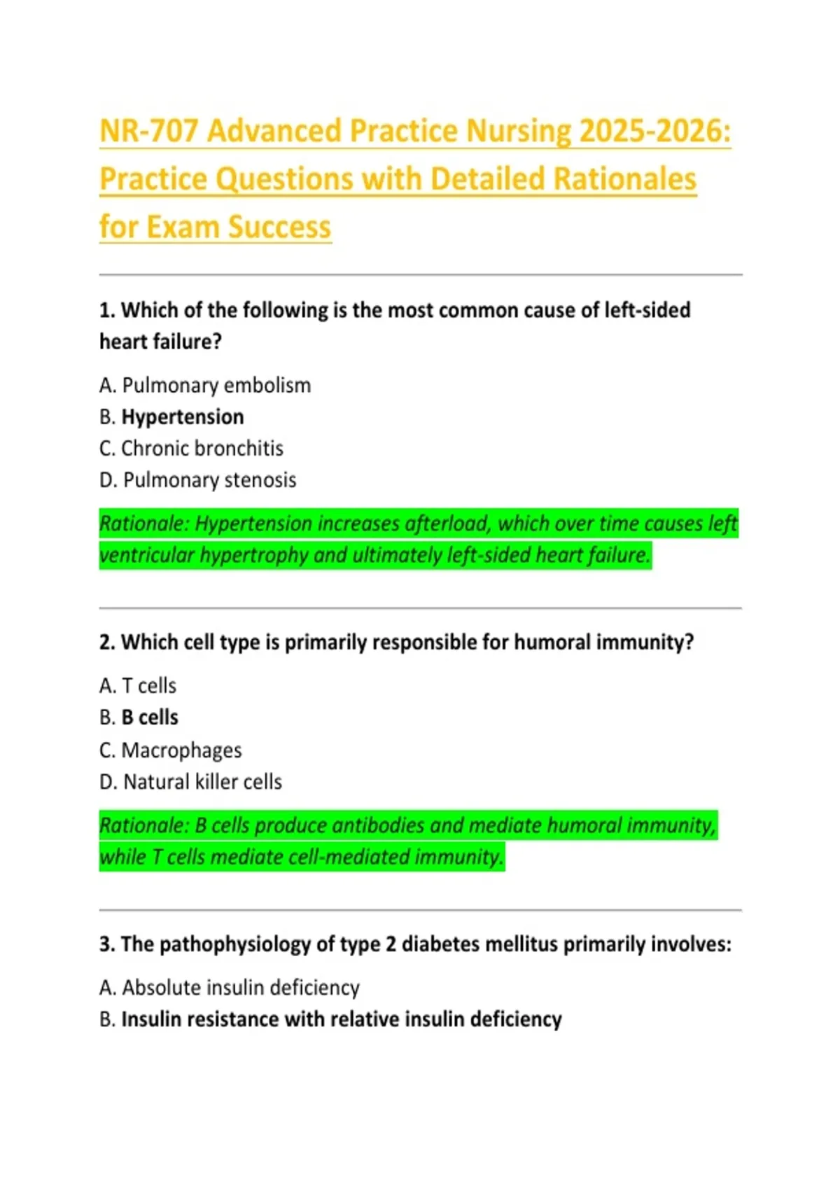 NR-707 Advanced Practice Nursing : Practice Questions with Detailed Rationales for Exam Success