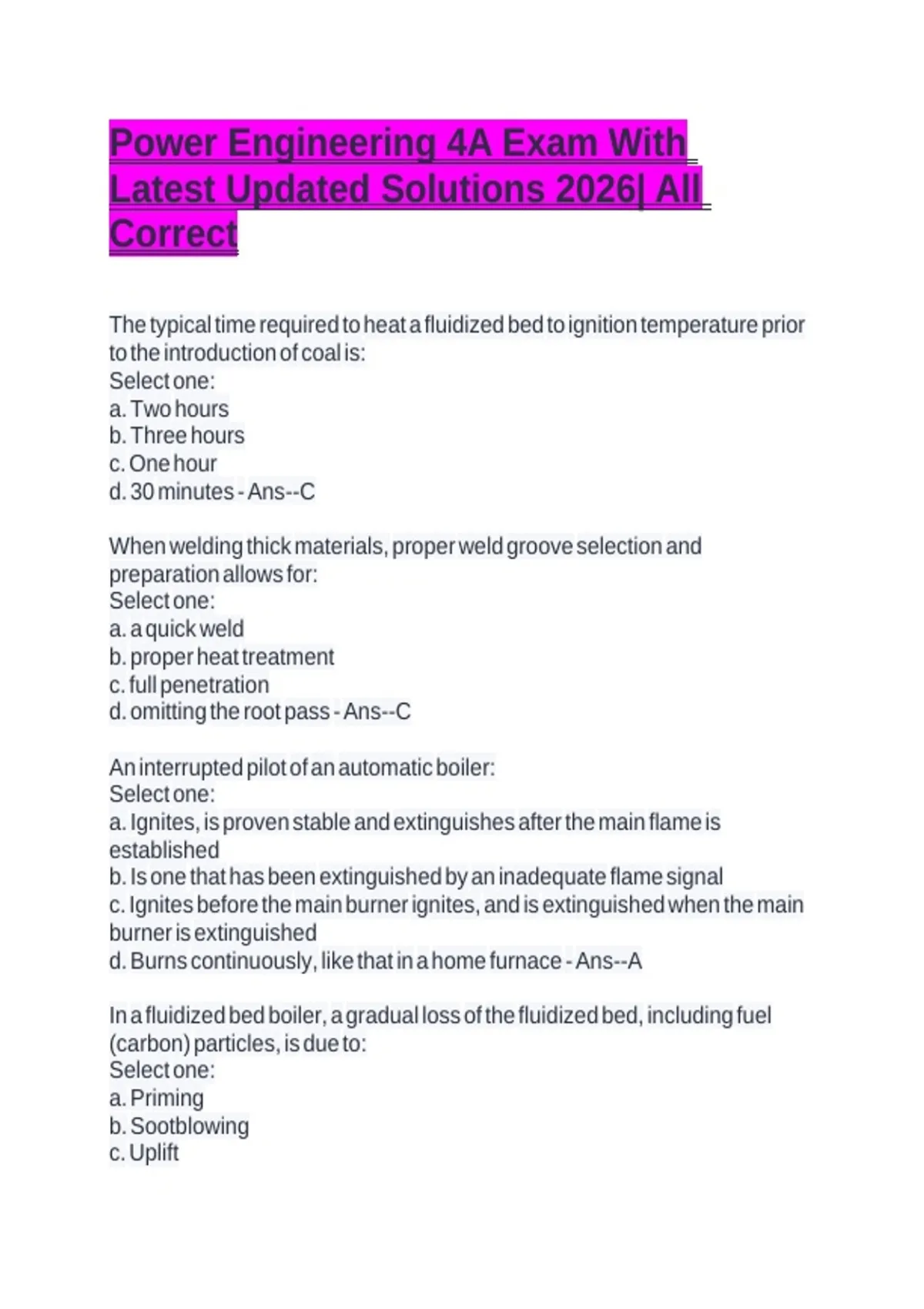 Power Engineering 4A Exam With Latest Updated Solutions 2026| All Correct