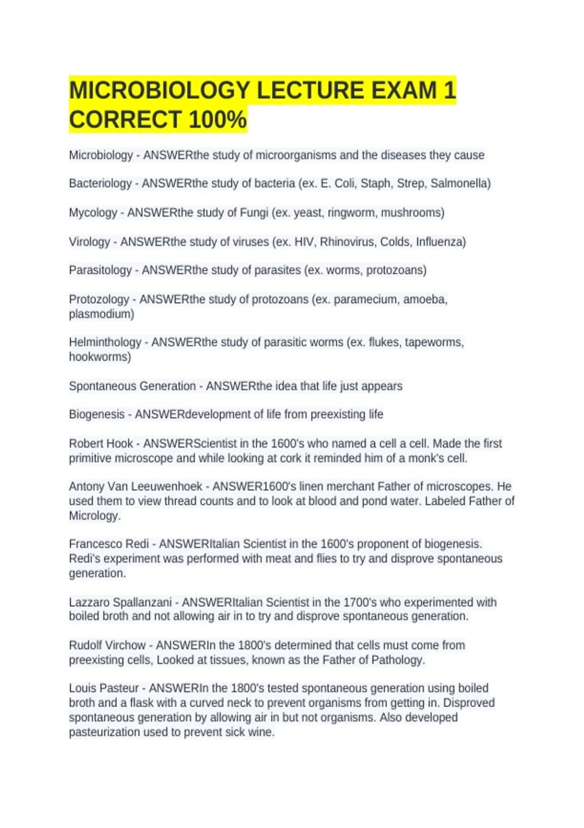 MICROBIOLOGY LECTURE EXAM 1 CORRECT