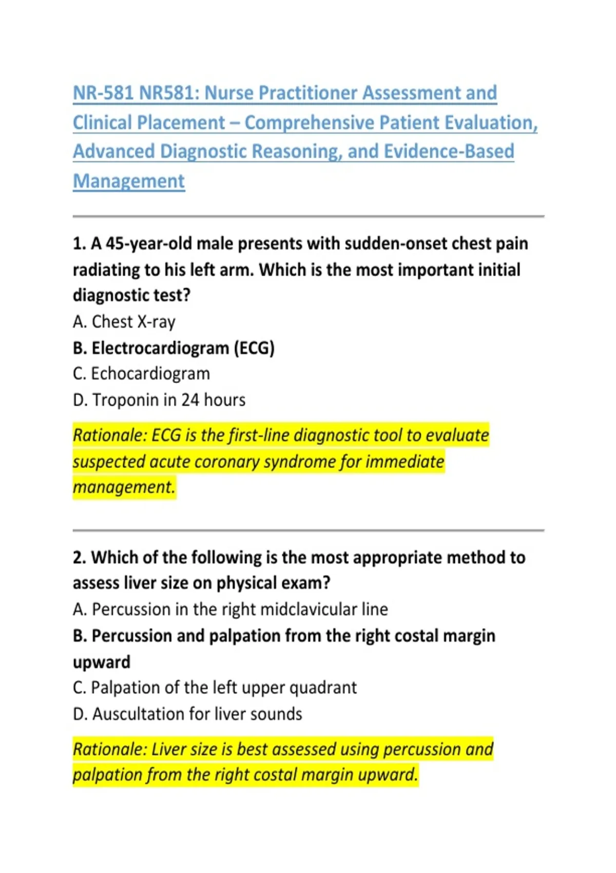 1. A 45-year-old male presents with sudden-onset chest pain