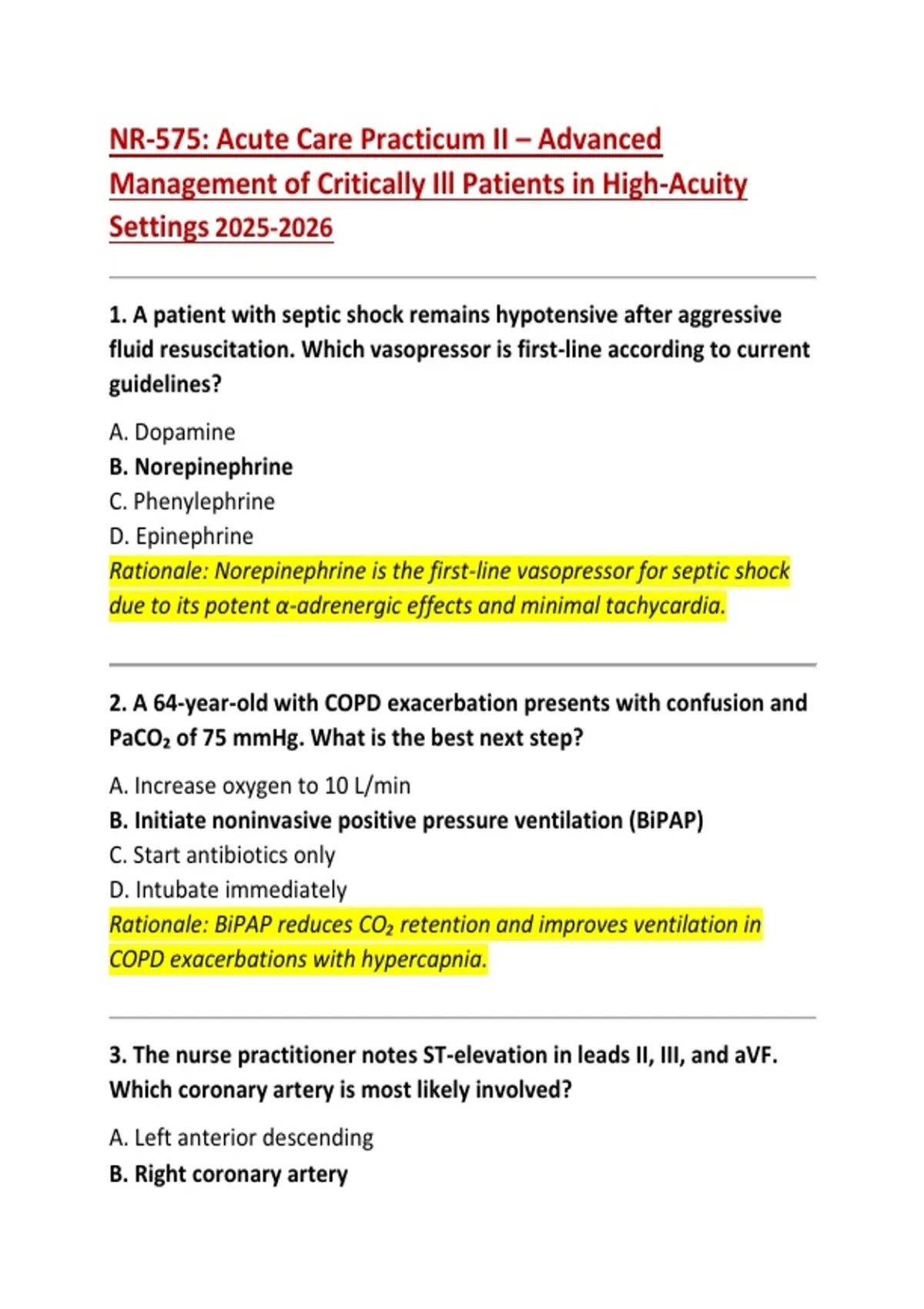 3. The nurse practitioner notes ST-elevation in leads II, III, and aVF.