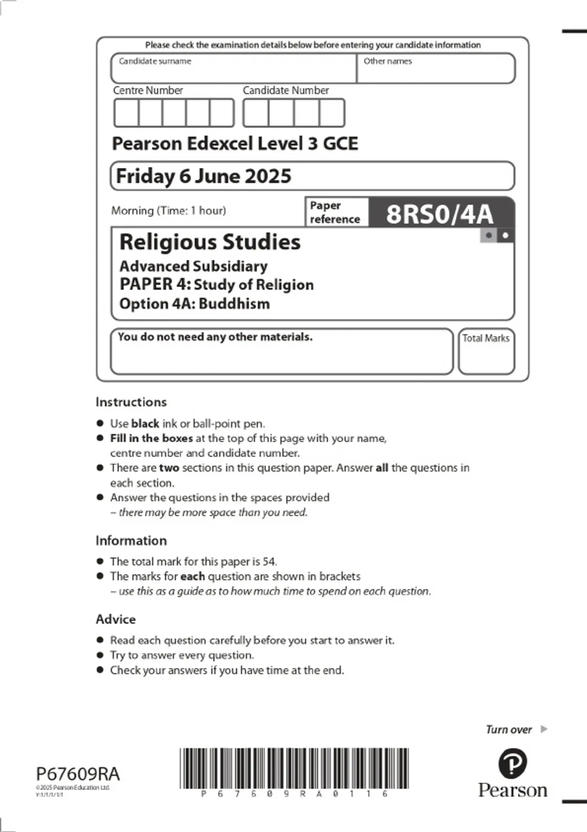 2025 Pearson Edexcel Level 3 GCE Religious Studies Advanced Subsidiary PAPER 3: New Testament Studies Combined Question Paper & Final Marking Scheme