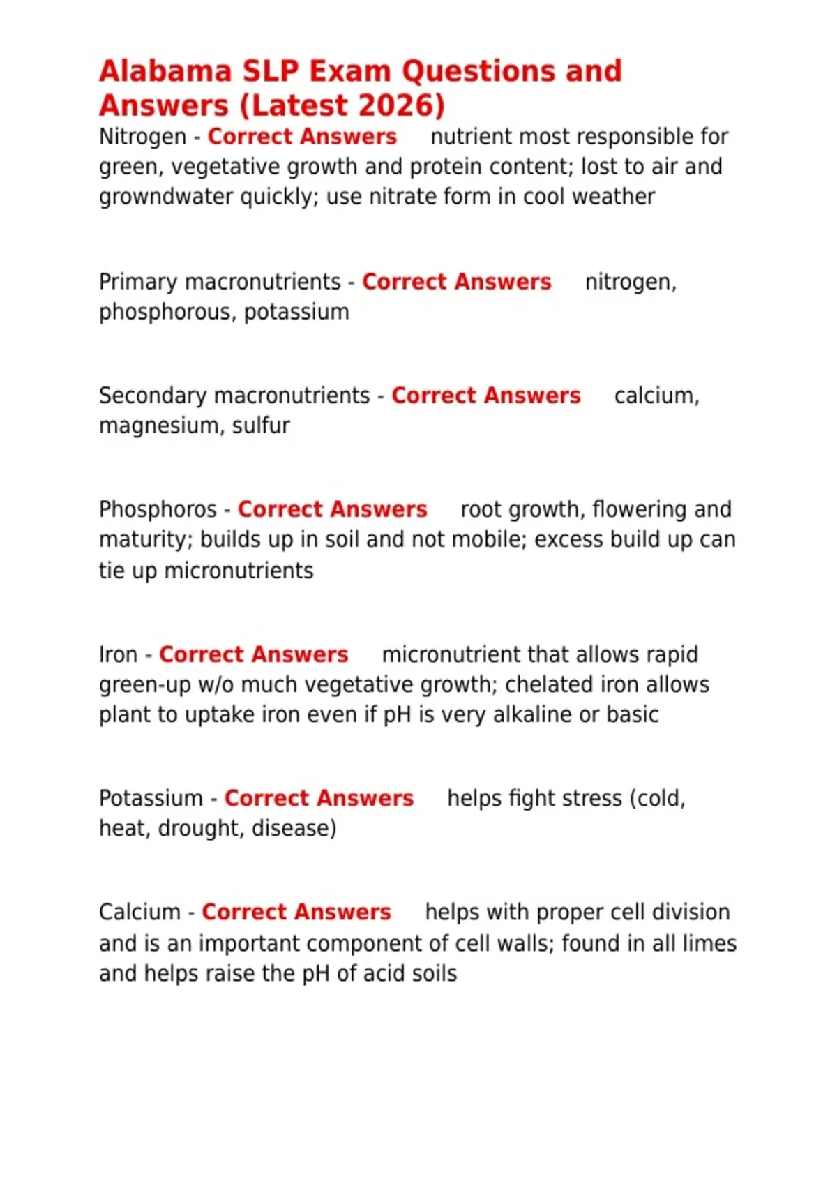 Nitrogen - Correct Answers ✅nutrient most responsible for