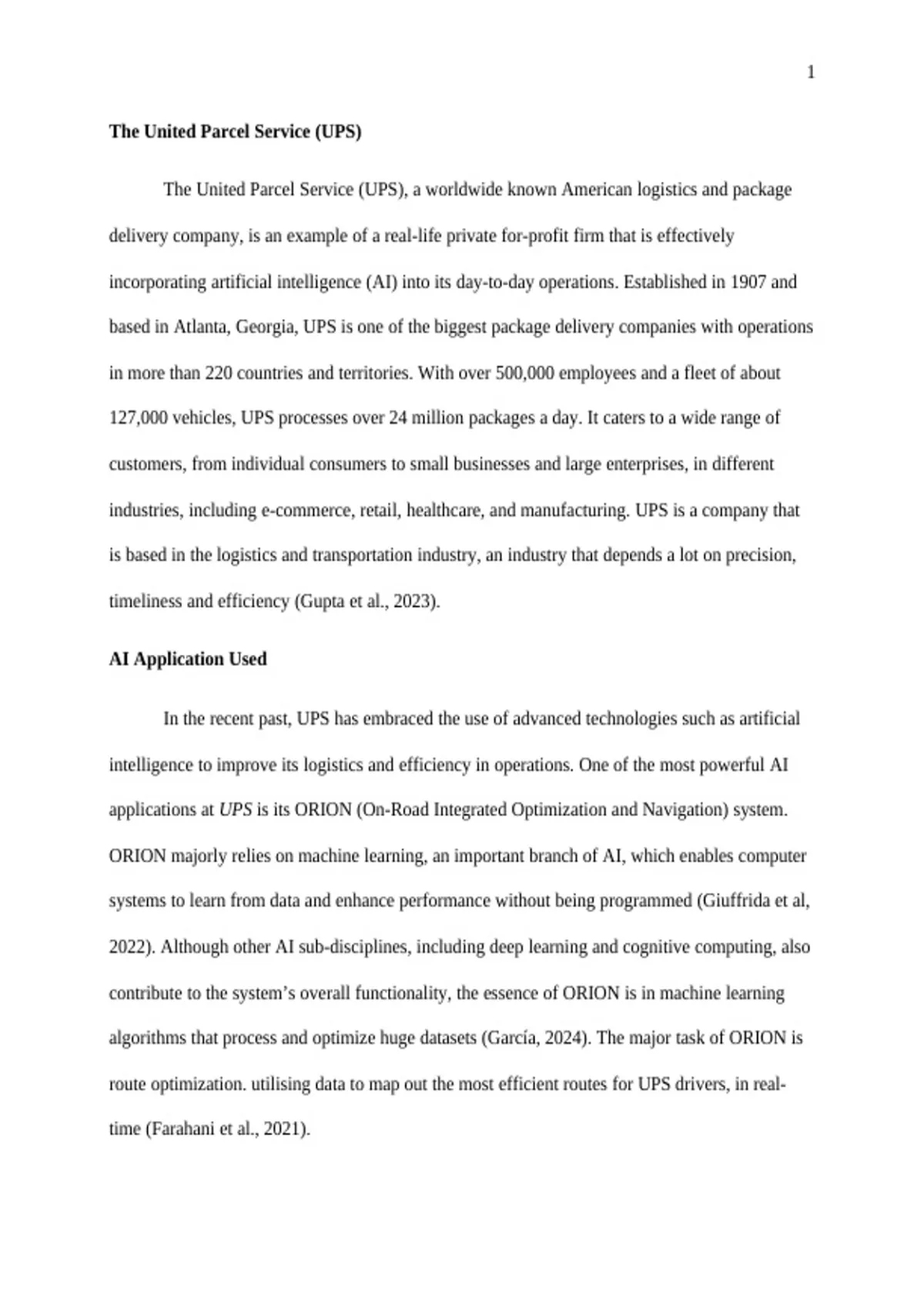 In the recent past, UPS has embraced the use of advanced technologies such as artificial