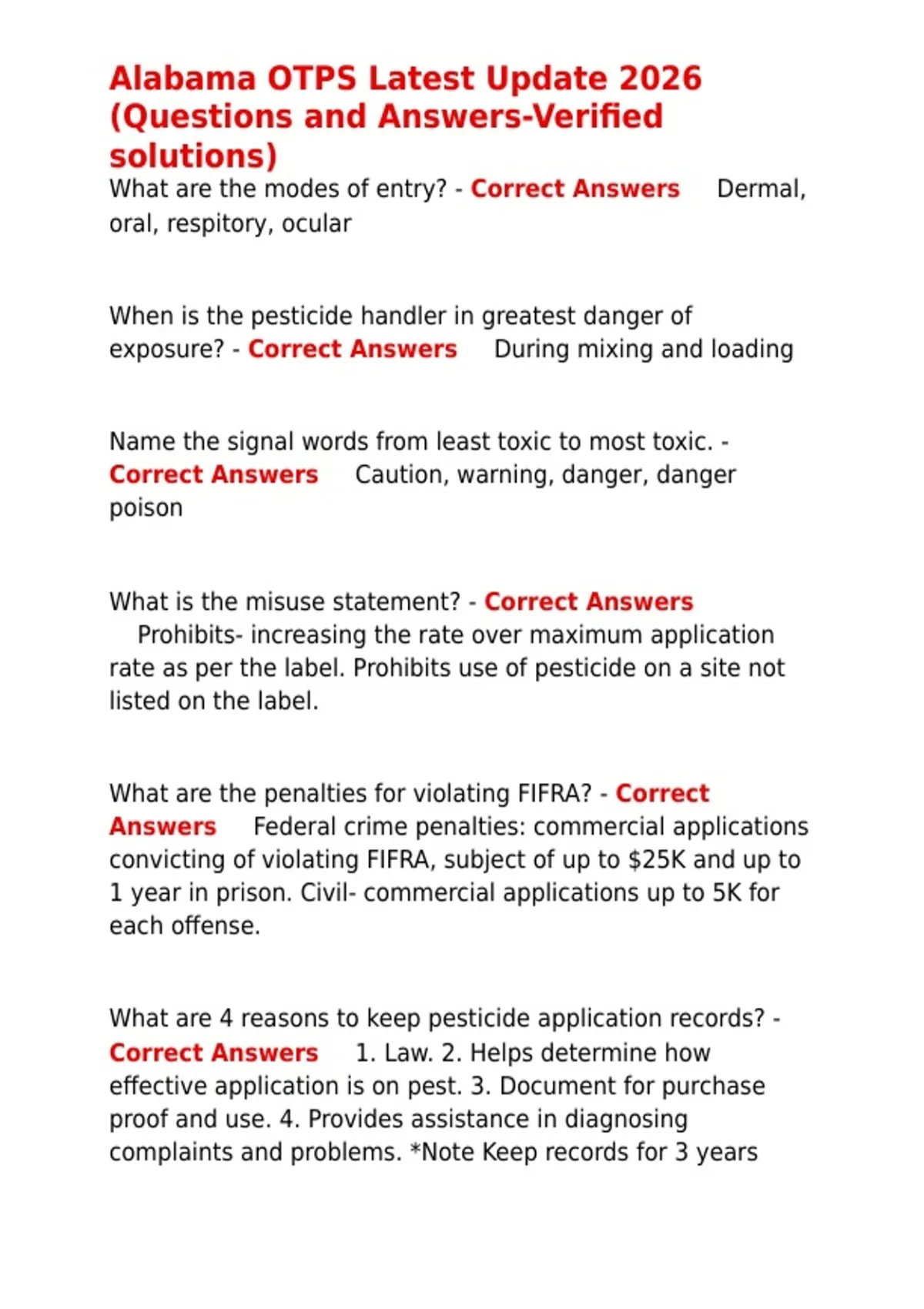 Alabama OTPS Latest Update 2026 (Questions and Answers-Verified solutions).