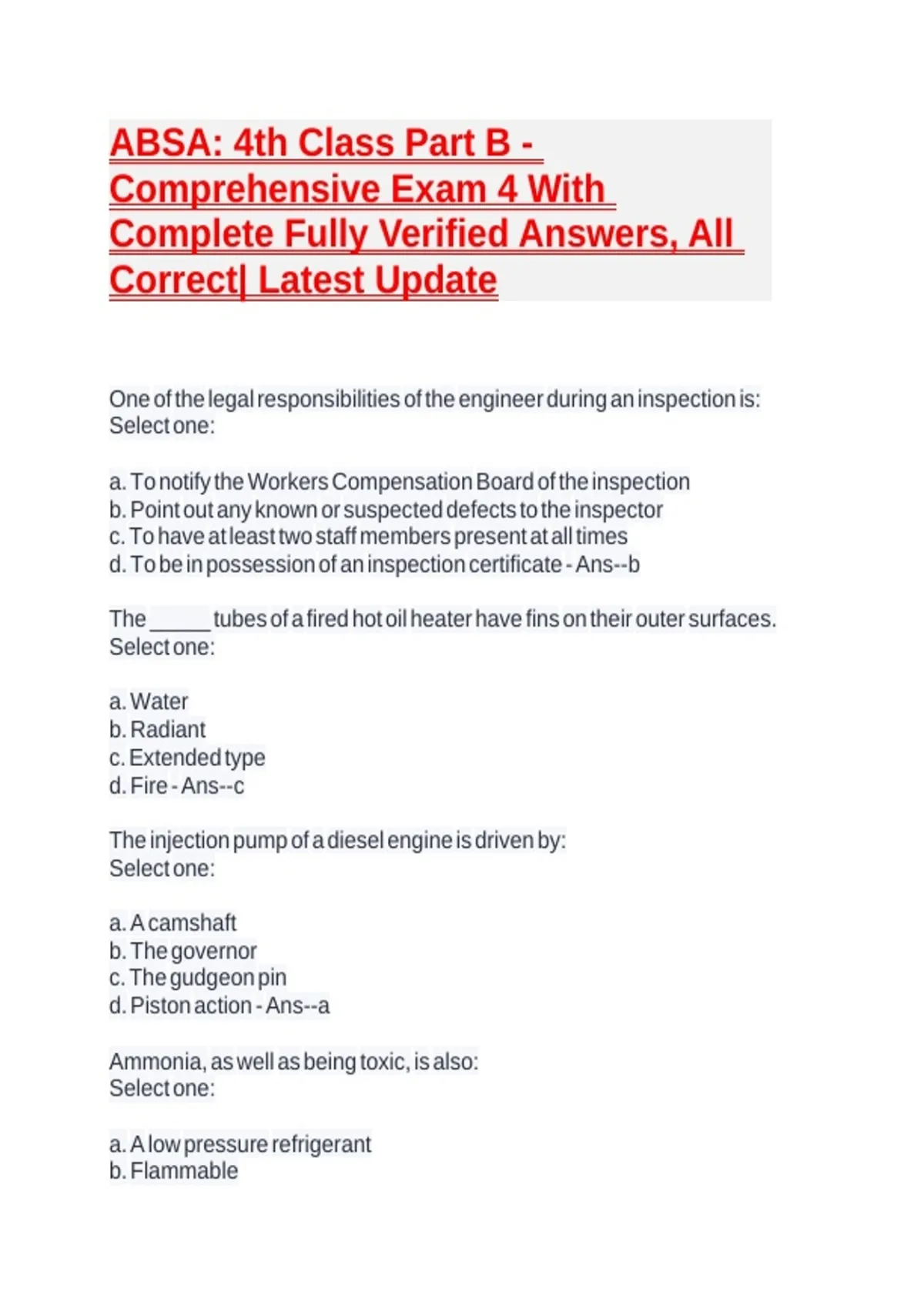 d. To be in possession of an inspection certificate - Ans--b