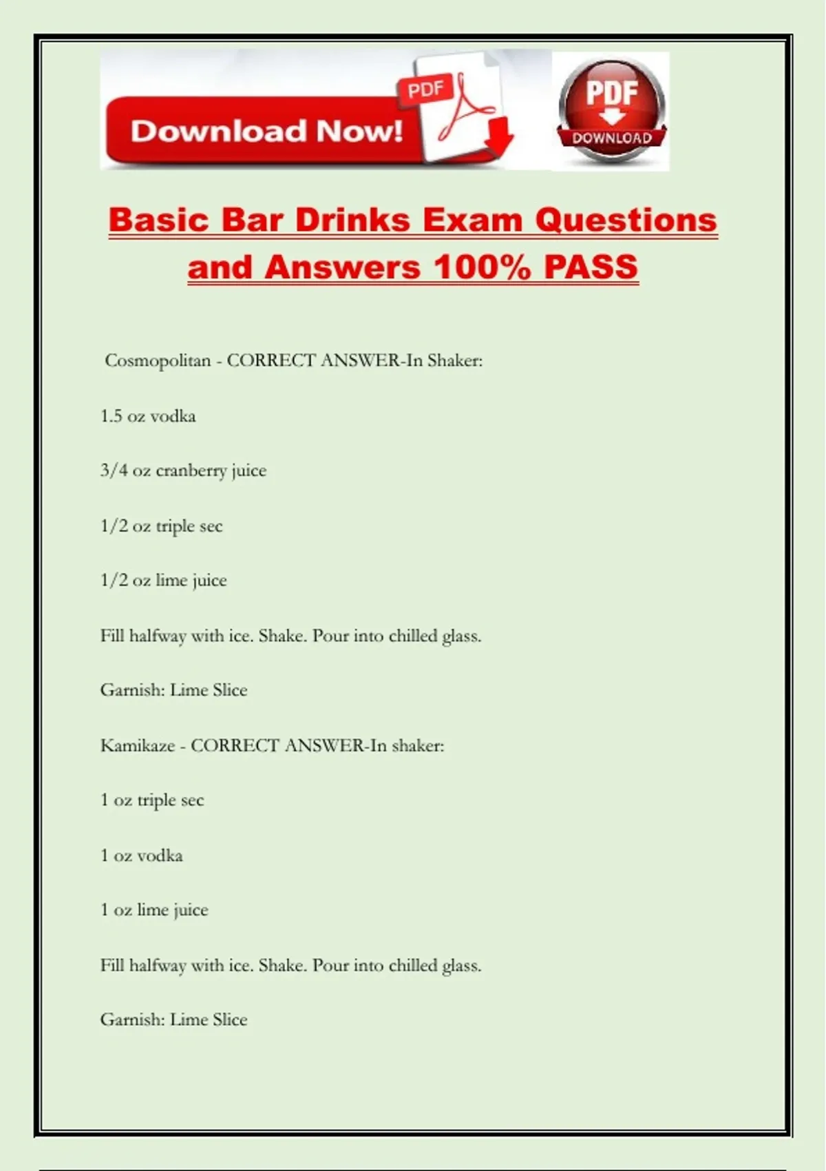 Basic Bar Drinks Exam Questions