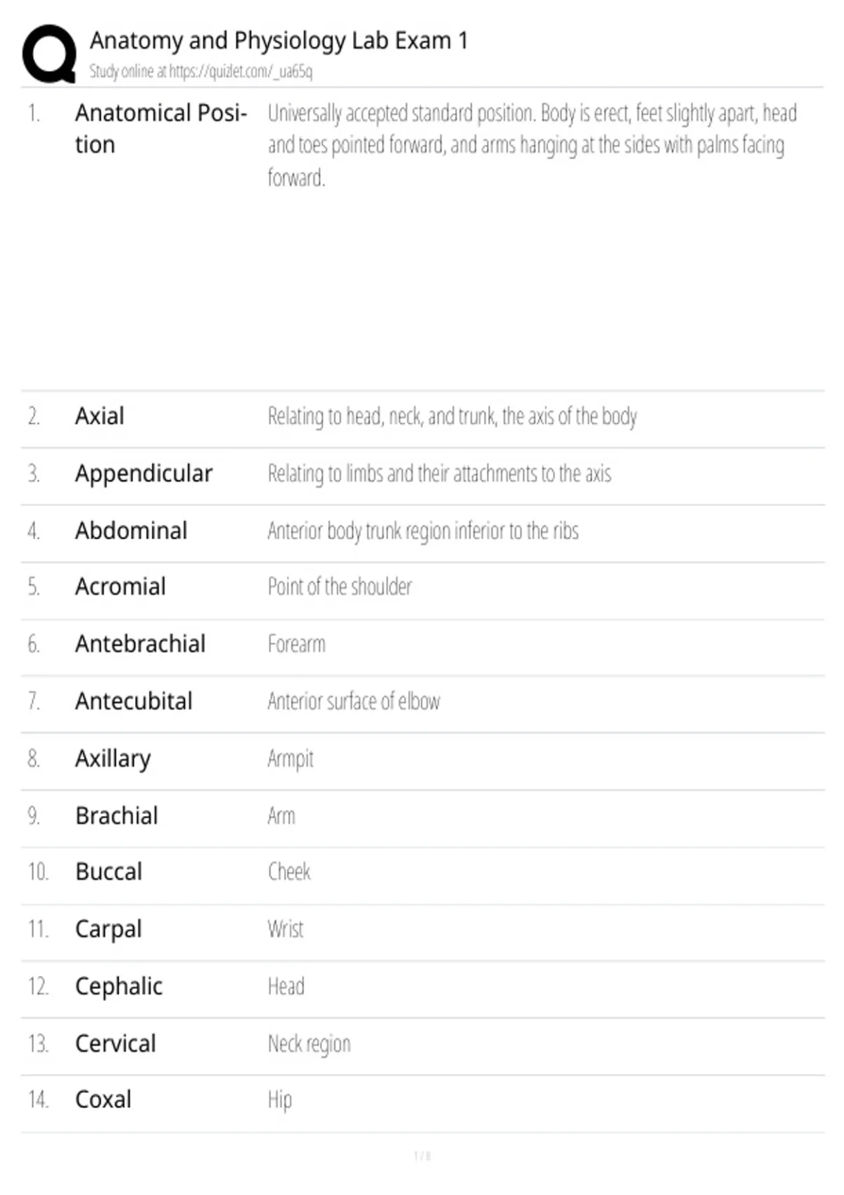 7. Antecubital Anterior surface of elbow