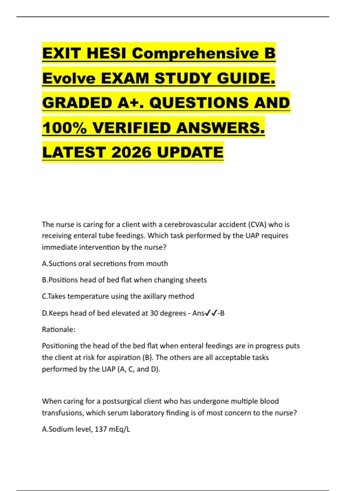 EXIT HESI Comprehensive B Evolve EXAM STUDY GUIDE. GRADED A+. QUESTIONS AND 100% VERIFIED ANSWERS. LATEST 2026 UPDATE EXIT HESI Comprehensive B Evolve EXAM STUDY GUIDE. GRADED A+. QUESTIONS AND 100% VERIFIED ANSWERS. LATEST 2026 UPDATE EXIT HESI Comprehensive B Evolve EXAM STUDY GUIDE. GRADED A+. QUESTIONS AND 100% VERIFIED ANSWERS. LATEST 2026 UPDATE