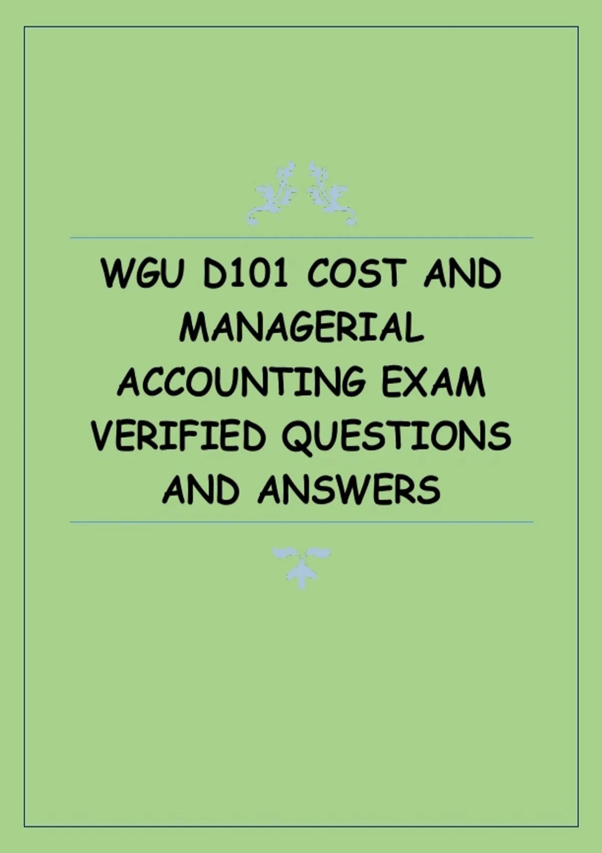 This document contains verified exam questions and accurate answers for WGU D101 Cost and Managerial Accounting. It covers key topics such as cost behavior, job and process costing, budgeting, variance analysis, CVP analysis, and managerial decision-making, making it a comprehensive resource for exam preparation.