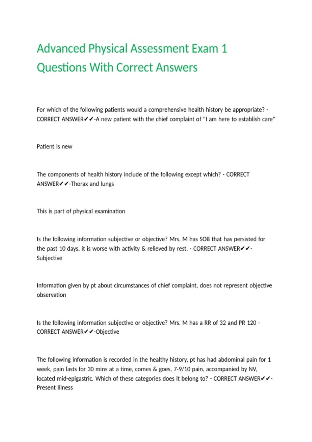 Advanced Physical Assessment Exam 1
