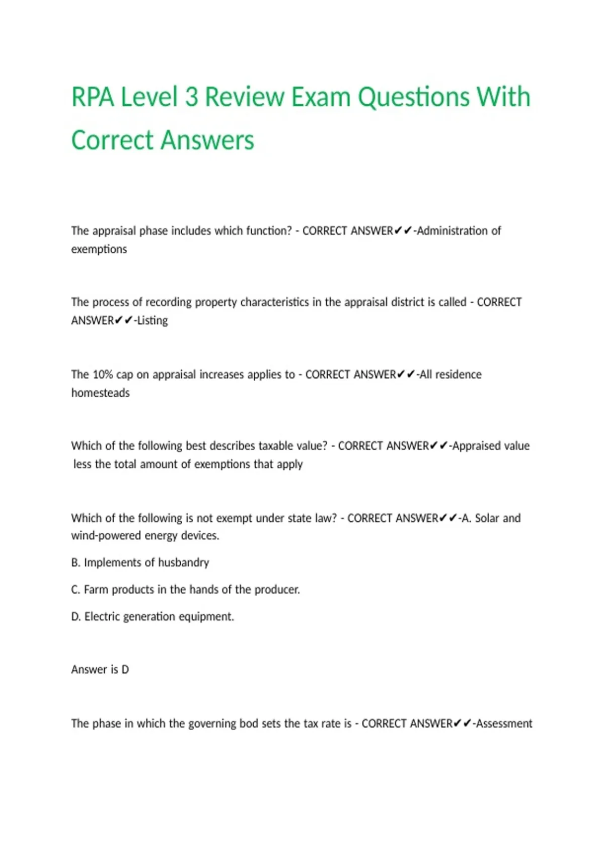 RPA Level 3 Review Exam Questions With Correct Answers.