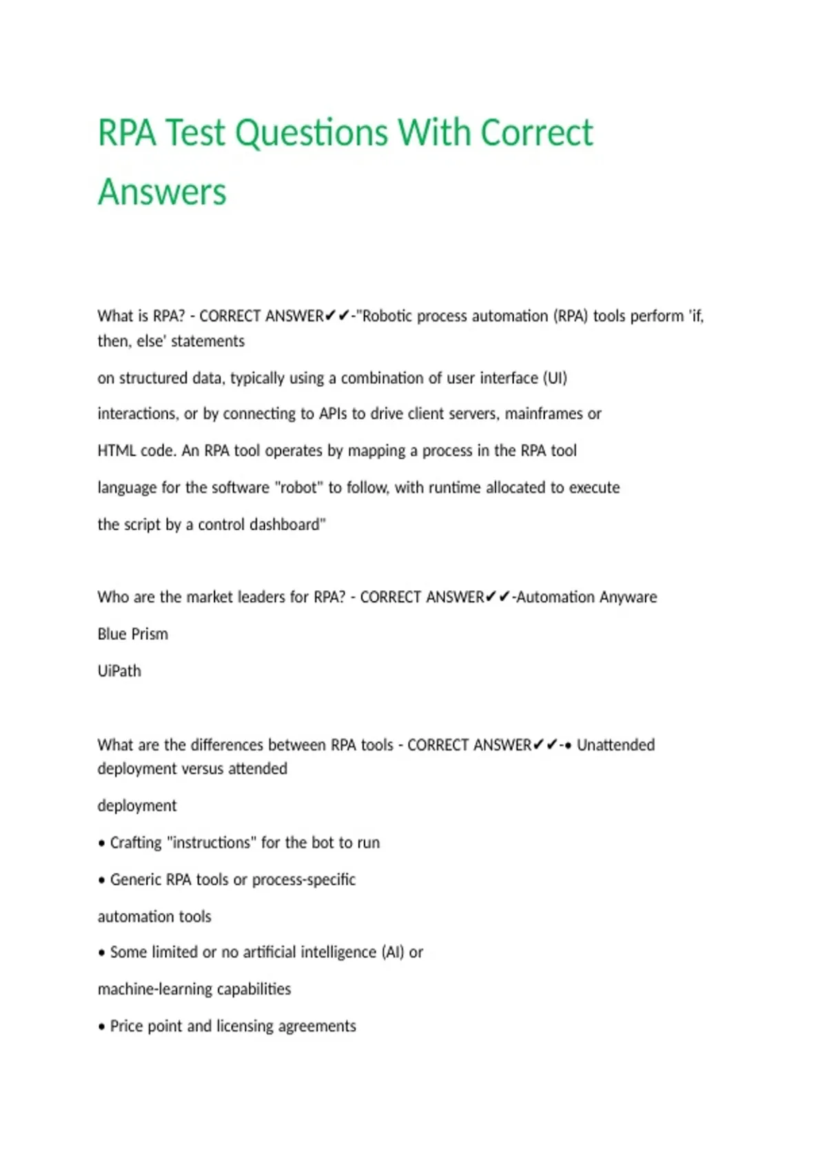 RPA Test Questions With Correct