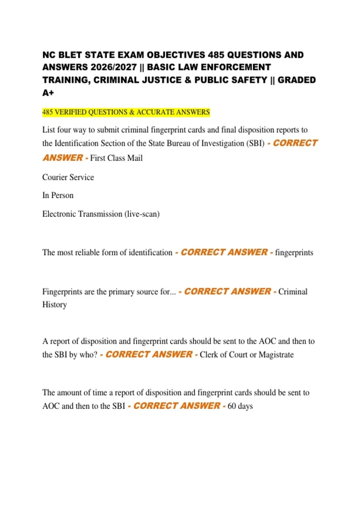 ANSWERS 2026/2027 || BASIC LAW ENFORCEMENT