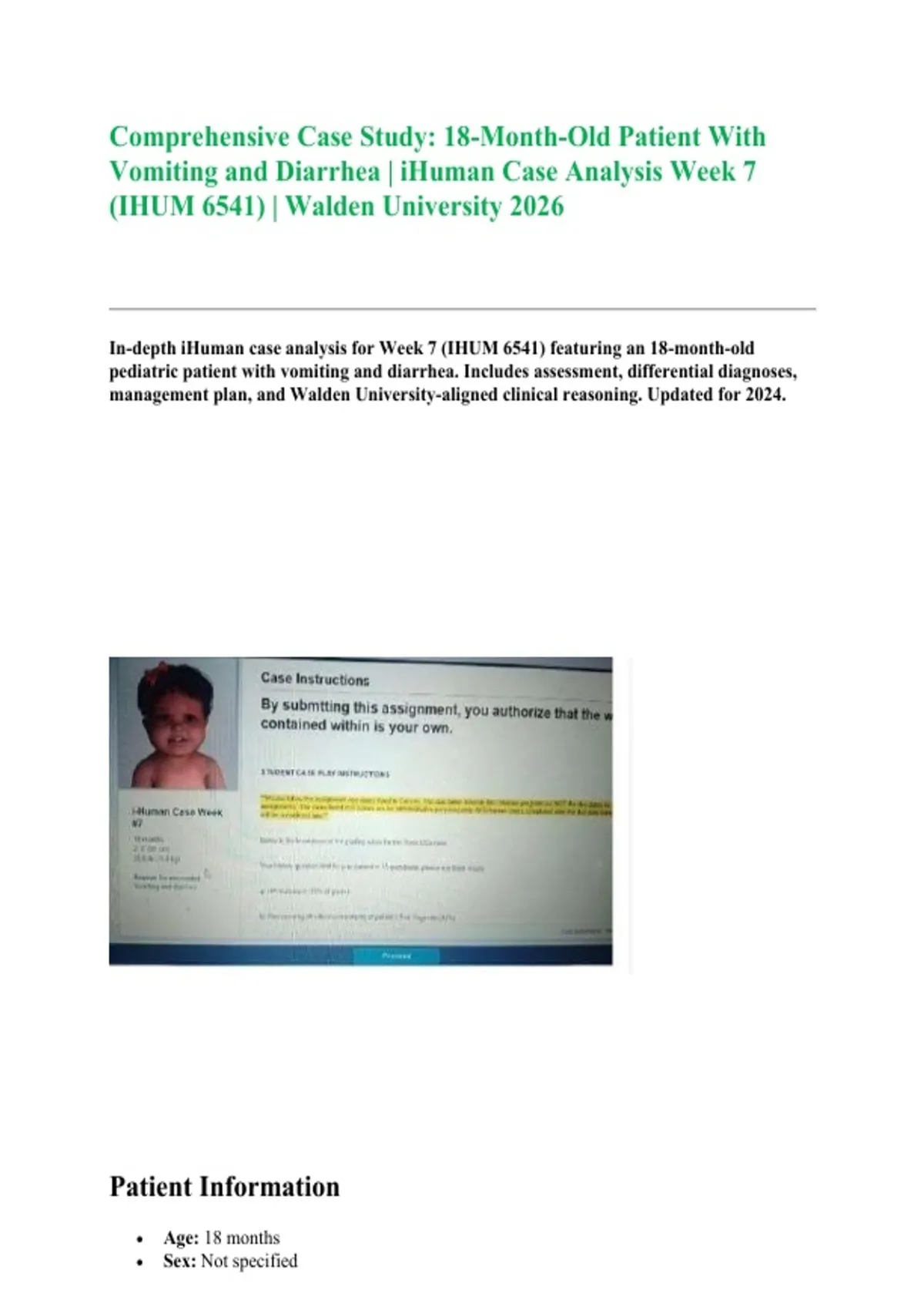 In-depth iHuman case analysis for Week 7 (IHUM 6541) featuring an 18-month-old