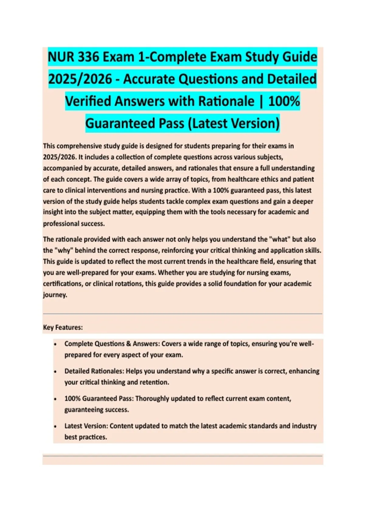 NUR 336 Exam 1 - NURSING EXAM STUDY GUIDE ACCURATE QUESTIONS AND CORRECT DETAILED ANSWERS WITH RATIONALES || 100% GUARANTEED PASS <BRAND NEW VERSION>