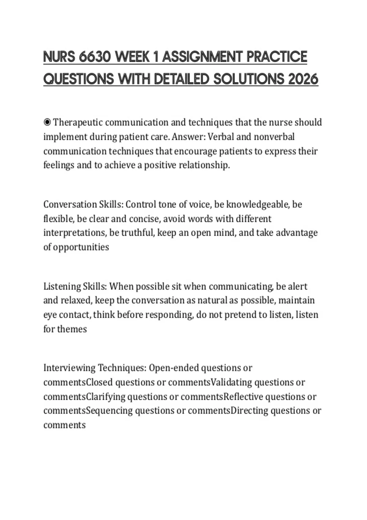 NURS 6630 WEEK 1 ASSIGNMENT PRACTICE QUESTIONS WITH DETAILED SOLUTIONS 2026