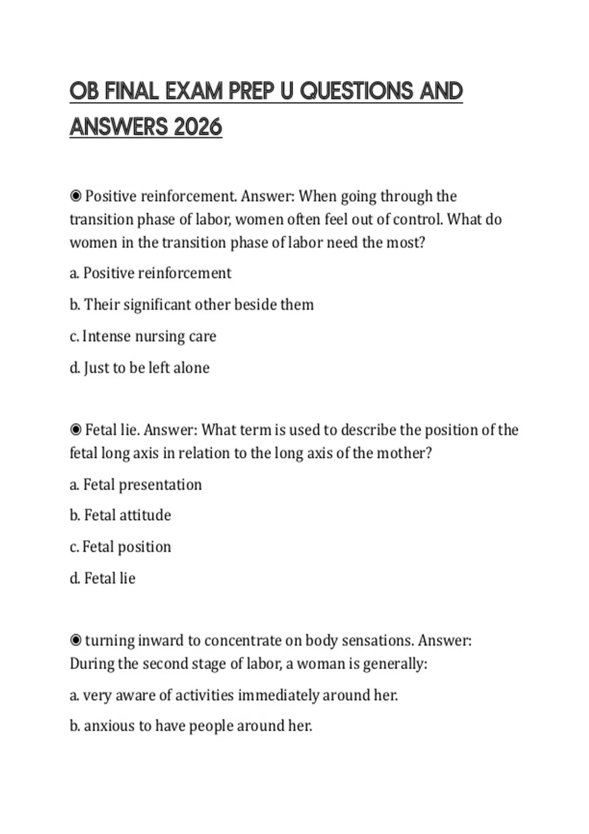 OB FINAL EXAM PREP U QUESTIONS AND ANSWERS 2026