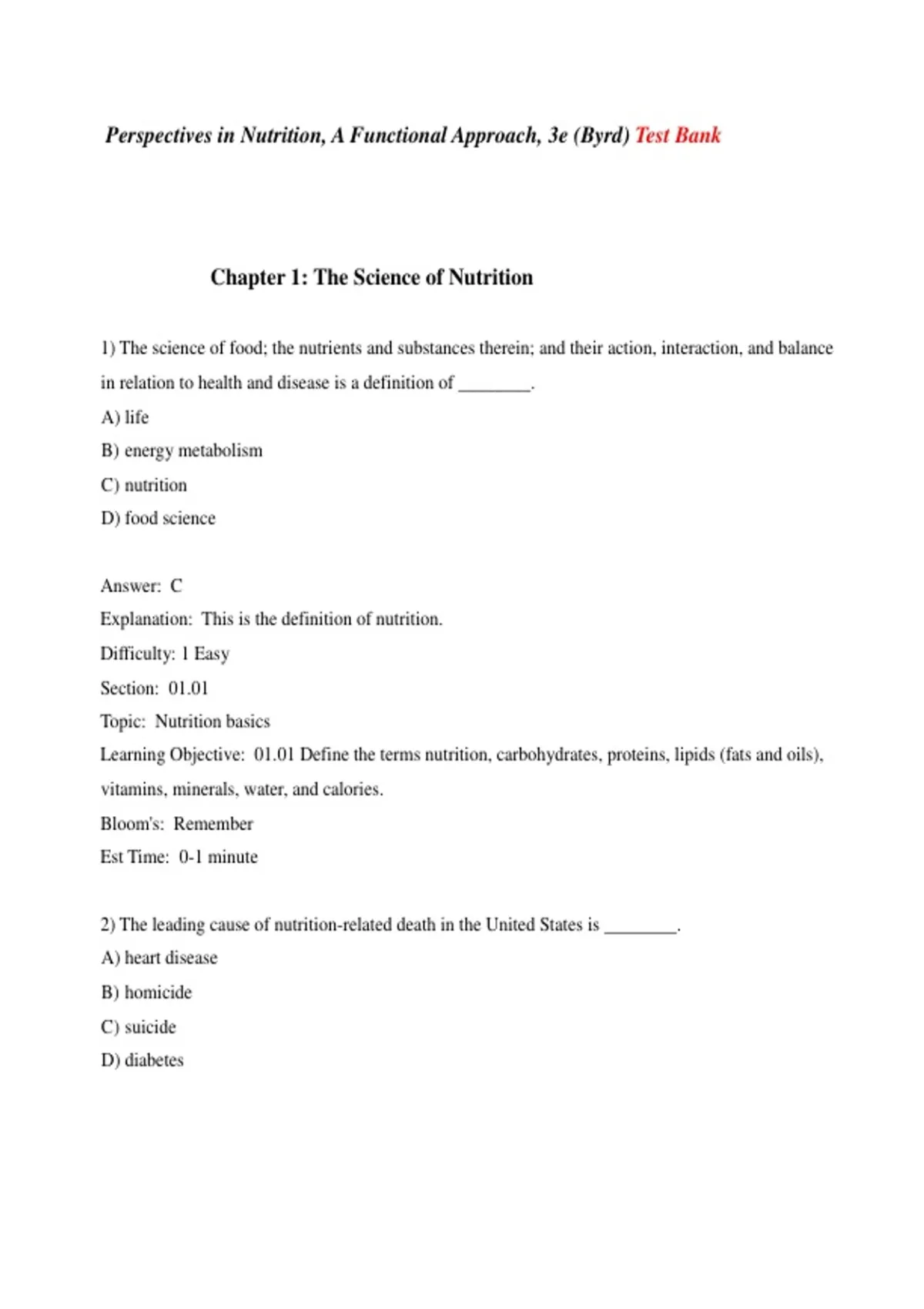 Perspectives in Nutrition, A Functional Approach, 3e (Byrd) Test Bank Page 2 Questions Answers Updated 2026