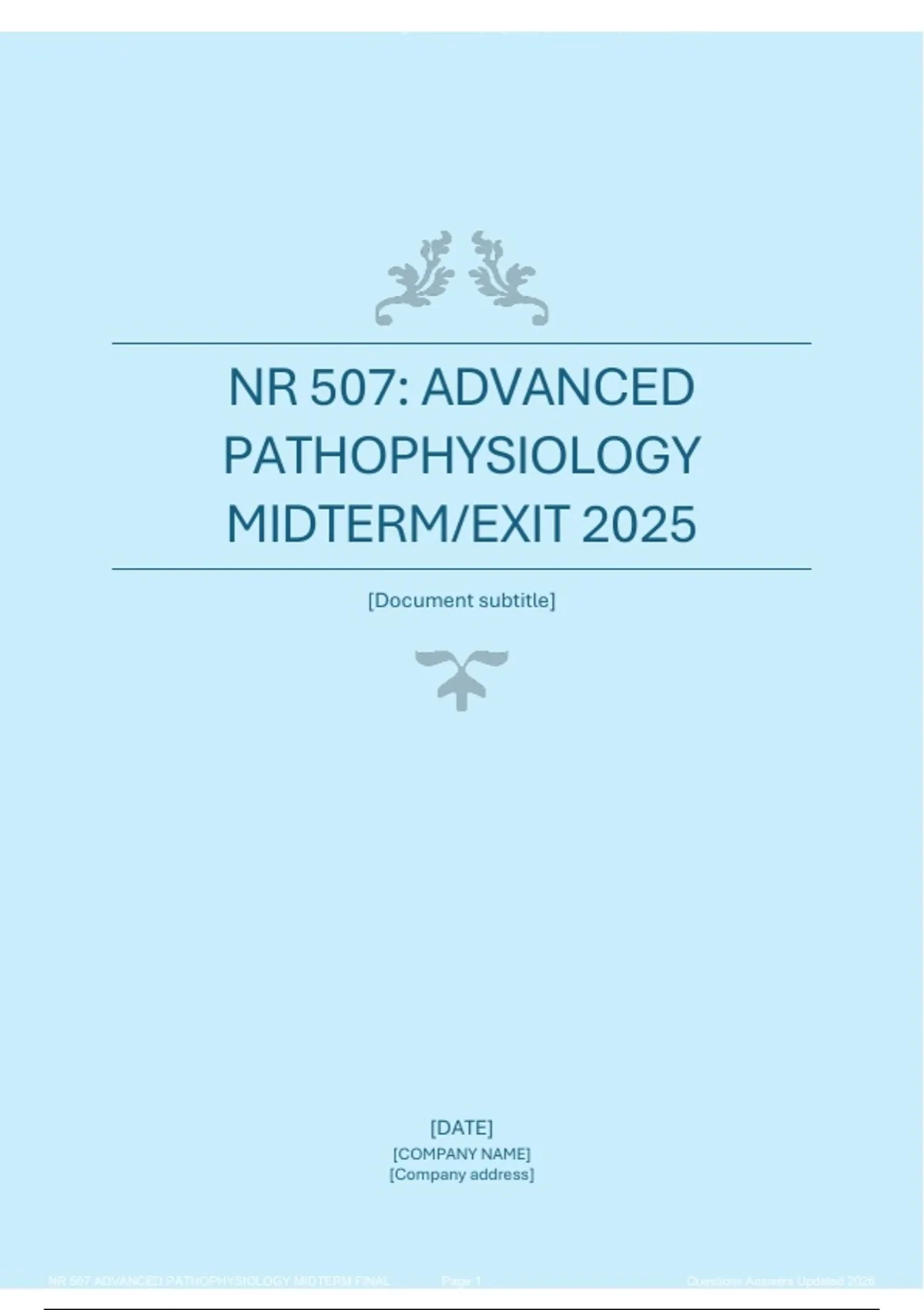 NR 507 ADVANCED PATHOPHYSIOLOGY MIDTERM FINAL Page 1 Questions Answers Updated 2026