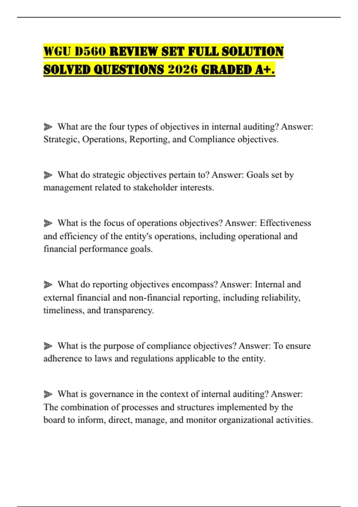 ⫸ What is governance in the context of internal auditing? Answer: